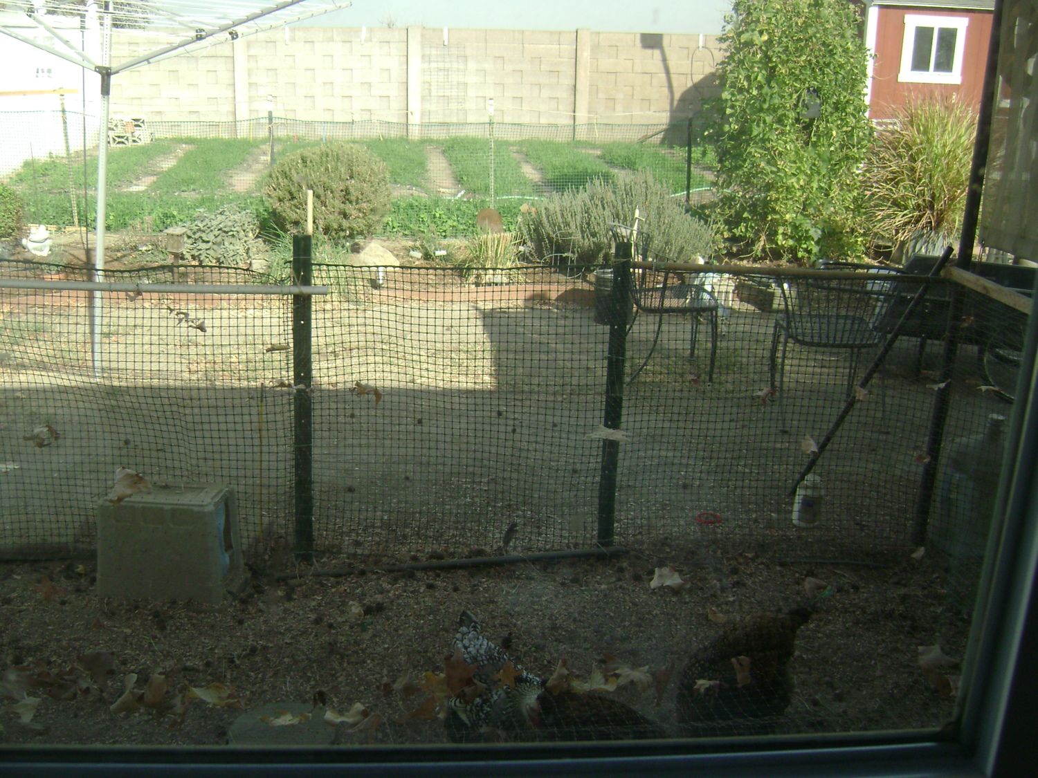 Not I! These are pretty cool & I was thinking about doing one but I no longer have space for one. Recently moved the herb bed closer to the kitchen & I'm happy with it, Perennial herbs go here, annuals go out with veggies. As viewed for kitchen window, not the best pic but herb garden includes; mint, oregano, marjoram, sage, rosemary, thyme, french tarragon, chives, garlic chives, thyme, curry & lavender. There's a large container of lemon grass just to the right of the runner beans.