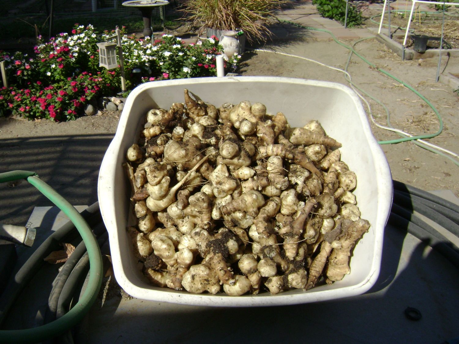 Tried Sunchokes this year in a pot, they did pretty well. Next year I think I'll put them in a potato bin so I can steal some through out the fall & winter.