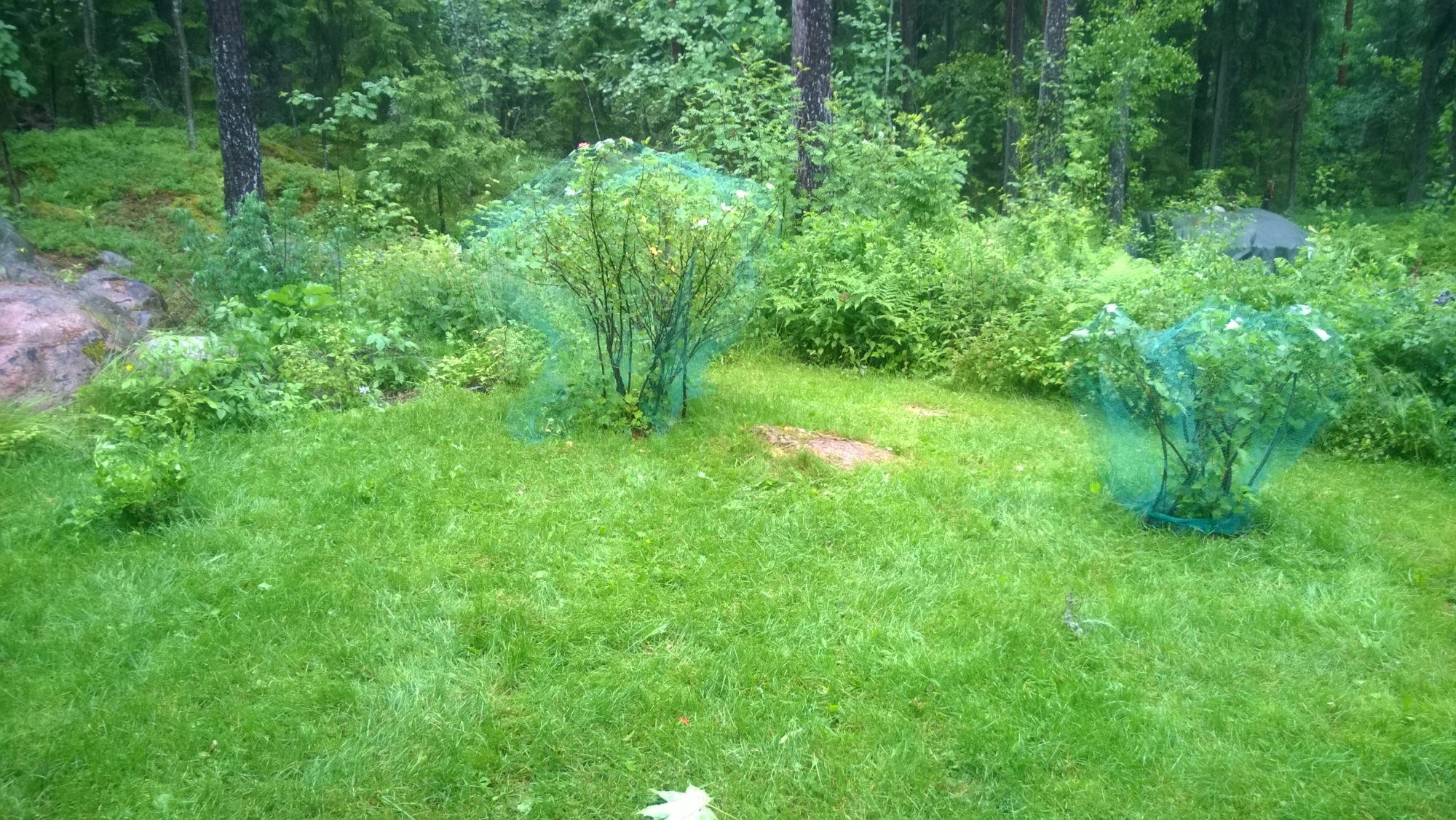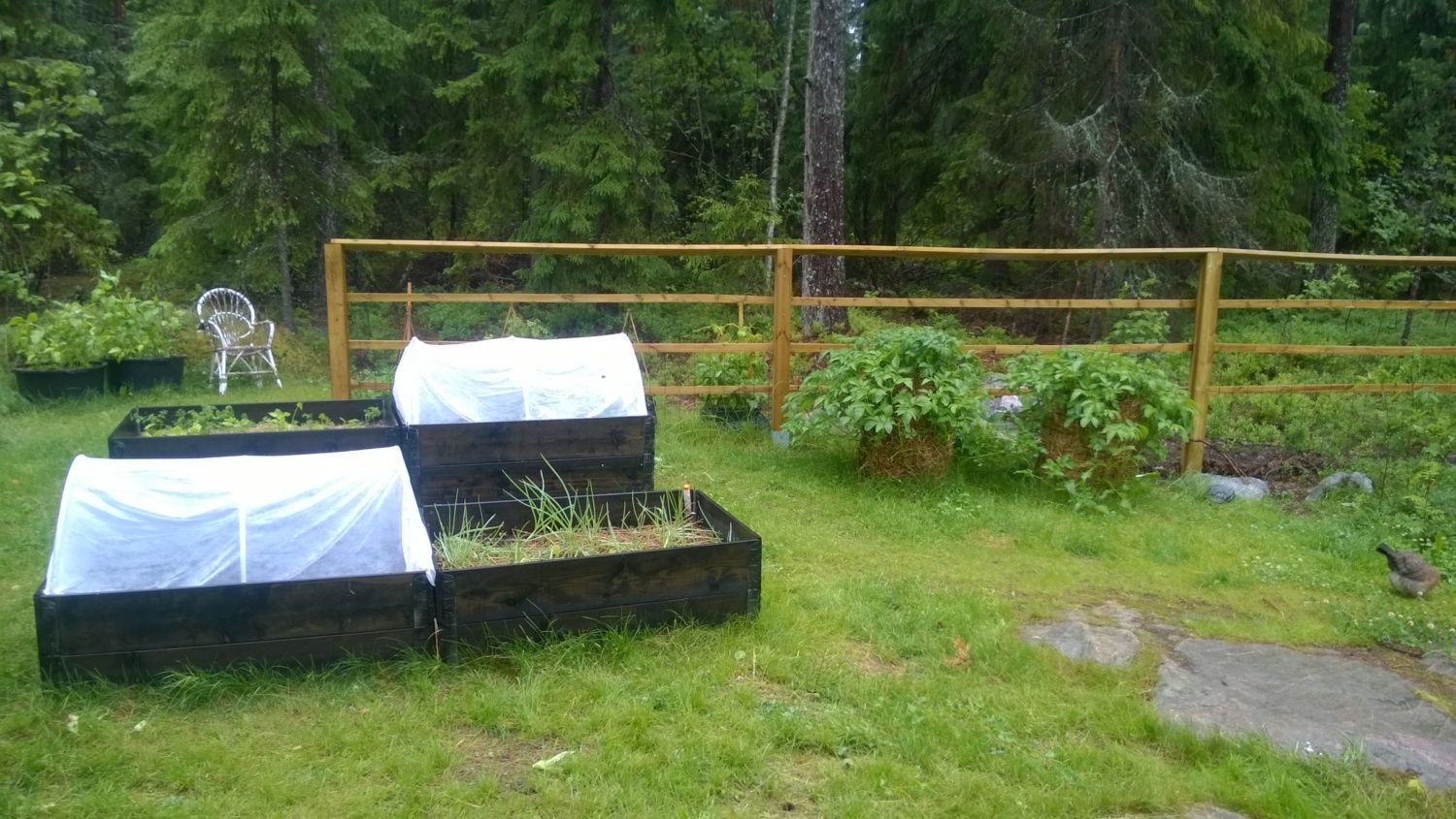 Good luck with keeping the birds out.Our berry bushes have been raided by birds, so today's project was putting in some netting to protect them. Our salads and cabbages are being raided by our chickens, so those needed some protection too. Here's what we got done.