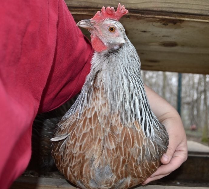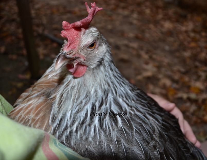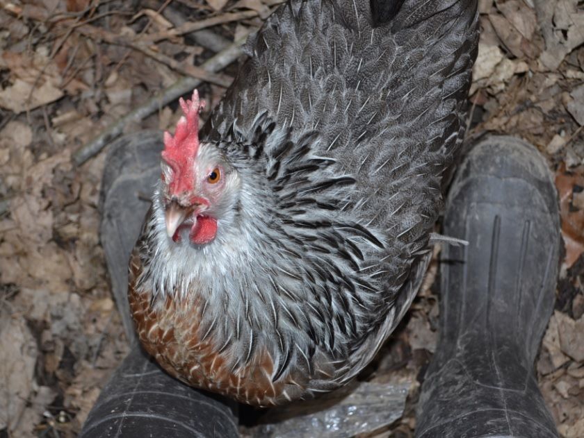 I think I would be remiss if I didn’t talk about my ol’ grumpy Barred Rock, Freema, too. Freema is a lap sitter as well, but much more greedy about it. She believes all human laps belong to her for her use only. She is queen ruler of all the laps and if you don’t get permission to have someone else in your lap, Freema’s going to give you an ear full for it! All she wants to do is sit in someone’s lap all day long, every single day, and hug on them. And I do mean she hugs on them—she stretches her neck up over your shoulder and kind of spreads her wings out over you like she’s trying to hug. Of course, she has a reputation to keep as a grumpy-grump, so that’s our little secret.