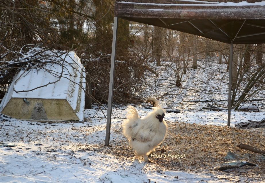 In January, not long before the above story, we lost a hen to a hawk while I was away at class and poor Reub was so upset. He stood out like this for days just watching the skies, alone in the frigid cold, while the hens stayed in the coop safe and sound: