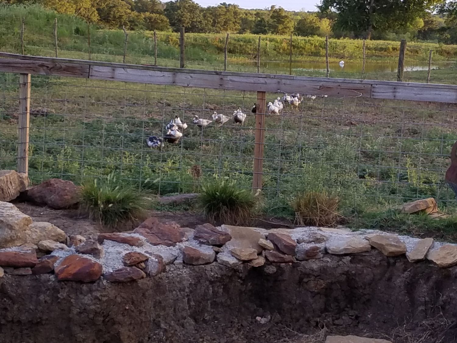 Trying to get the ducks to stay at one of our stock tanks. I herded them out to it and then they beat me back to the house. This happened for days. Finally, I just gave up and that’s when we built our duck pond. Now they go to the stock tank often and I can’t keep them out of it, lol.