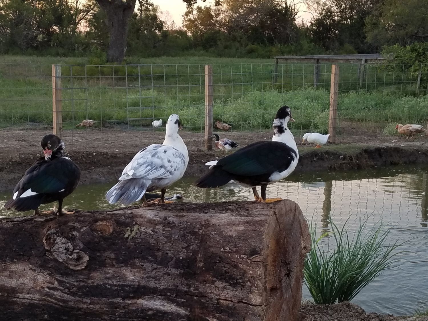My husband and I have been married for 27 years. We live on a 113-acre old family farm in South Central Texas. We built our dream home in 2008. From my office and kitchen windows I can see the chicken yard and coop and from our dining room window and back porch I can see the duck yard and pond. We have Muscovy and a mixed flock of Pekin, Welsh Harlequin and Swedish ducks. One Lavender Orpington rooster, Barred Rock hens, Brown Leghorn hens and a Buff Orpington hen. We also have a large Purple Martin Colony of 76 pairs. I say ‘we’ but it’s really me. The DH isn’t into the birds like I am but he puts up with me and is very supportive. He builds all of the houses and coops. He and his brother built our duck pond. I work from home for the State of Texas so I get to spend lots of time watching and taking care of our animals.