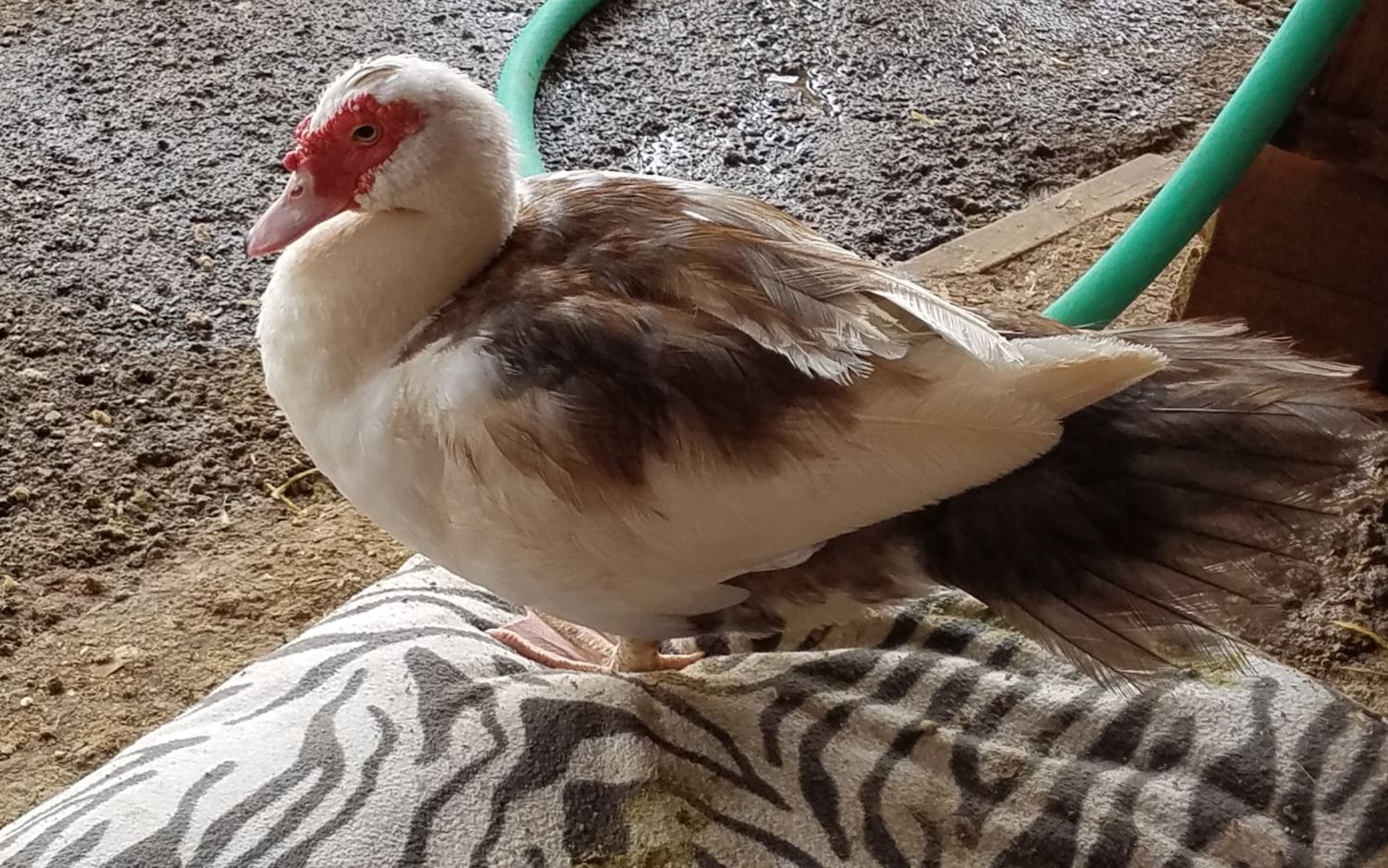 Bugs, my Blue Swedish duck that I just lost. She was the tiniest of the first day old ducks that we got but she was tough and she was a fighter. Bugs was my first broody. She hatched 14 babies and was a wonderful Momma. She got bit by a snapping turtle and I had to keep her inside while treating her. She turned into a snapper herself and would bite me every chance she got during her rehabilitation. She learned how to grab skin and twist making it hurt like fire. Presently my number one Muscovy Drake Bob stands out. He’s the best devoted mate and top of the pecking order. Bob protects his girls well and he cracks me up how he follows them back and forth from our tank. Bob’s wings are clipped so he has to run back and forth as his girls fly to and from. It’s kind of sad, lol. Last but not least, Fred. Fred is one of two eggs I hatched in my incubator from a shipment of eggs I bought online. The second hatchling didn’t make it. Fred was special from the start. When I had to put him out with the rest of the flock it broke my heart. I stayed out there as much as I could every day and fought for him anytime another duck came near. He learned to come to me when I called. But, when Fred reached mating age he abandoned me. He didn’t care for me at all anymore.