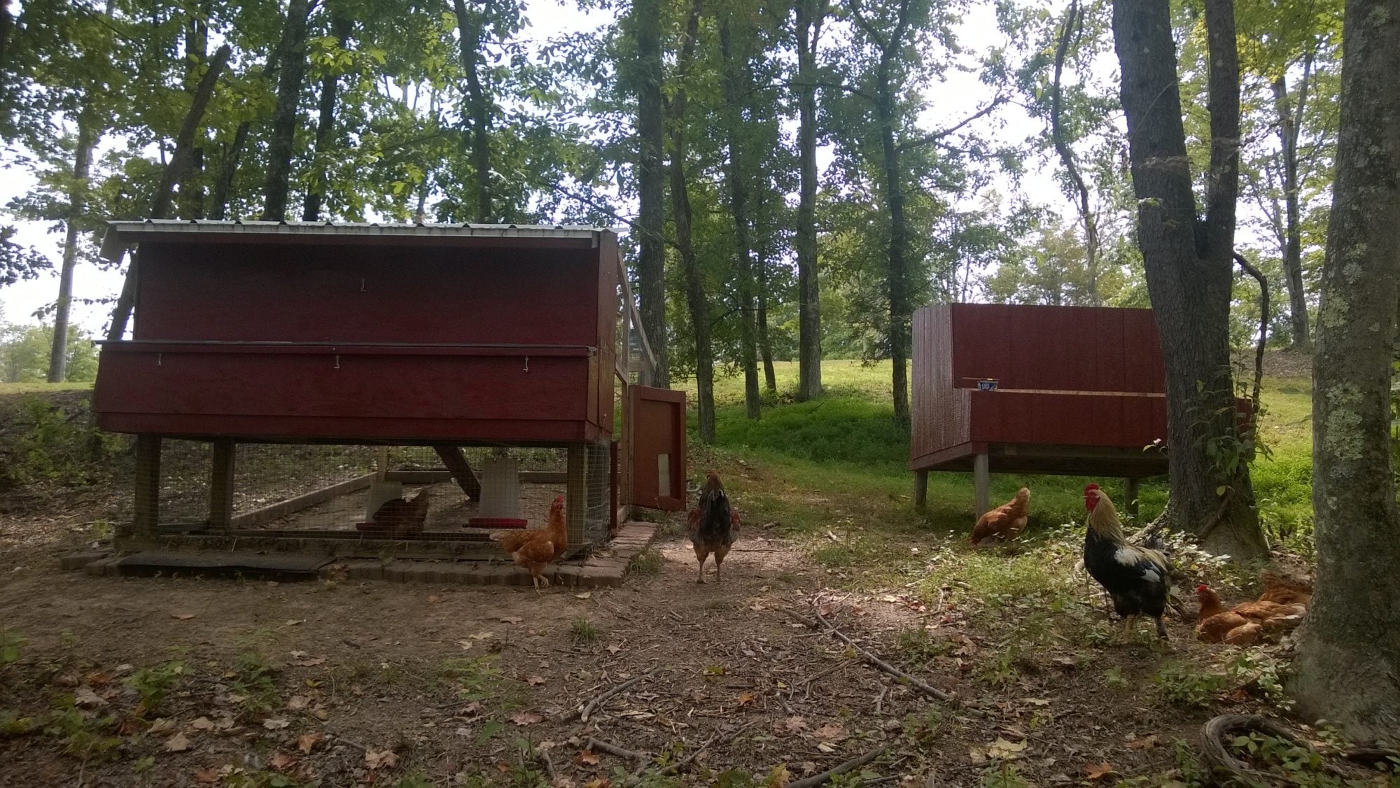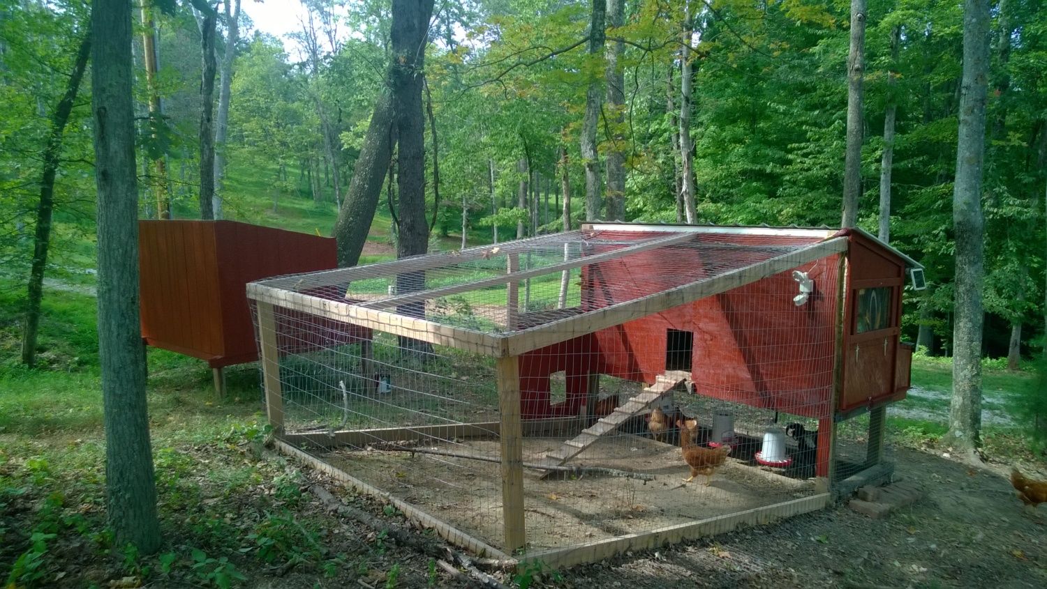 Still have to put the roof on the new one, cut in doors & windows, all that good stuff. Then build the run around the new one, connected to the old one. That way, if I want to cut through the fence and let them mingle, I can. But the plan is to leave the LO's locked up separately. The Comets and Roos have an automatic door, and they free-range all day. The coops aren't the prettiest things, but they will be functional!