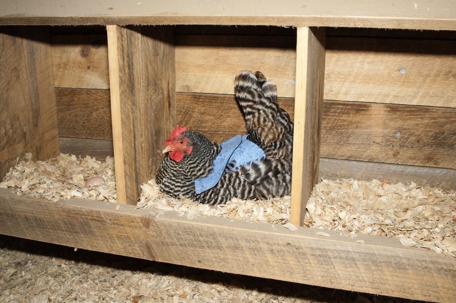 Frannie is a Barred Rock, she is confident, friendly and top hen. She will rip your face off for a grape and is Queen of the stink eye. She's robust and her feathers feel like velvet. She boldly sings the egg song and lays a large brown egg 6x/wk.