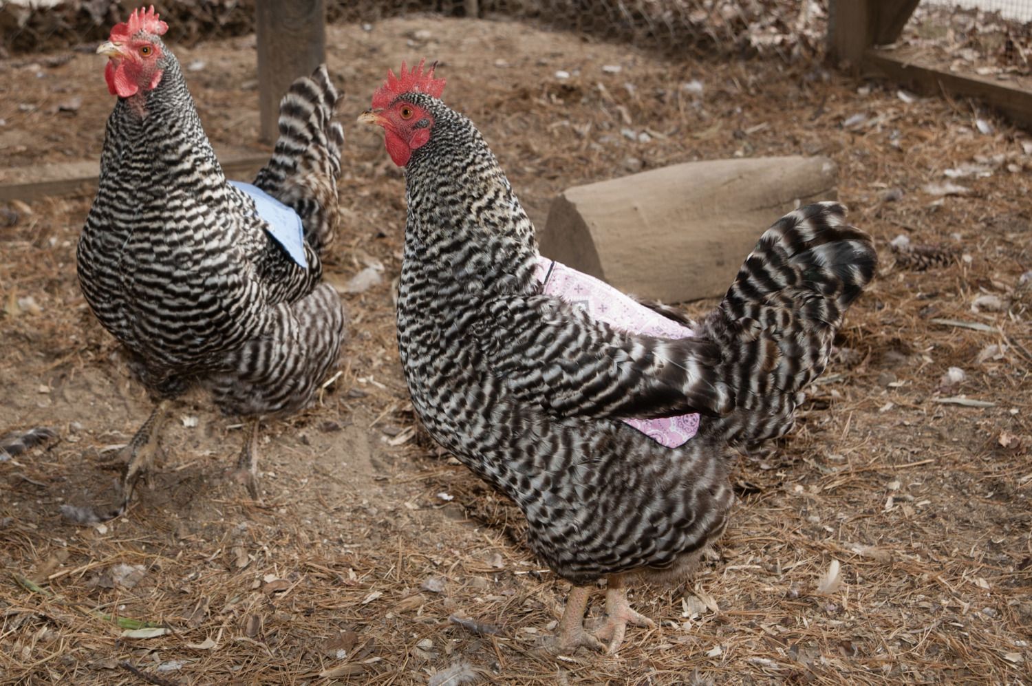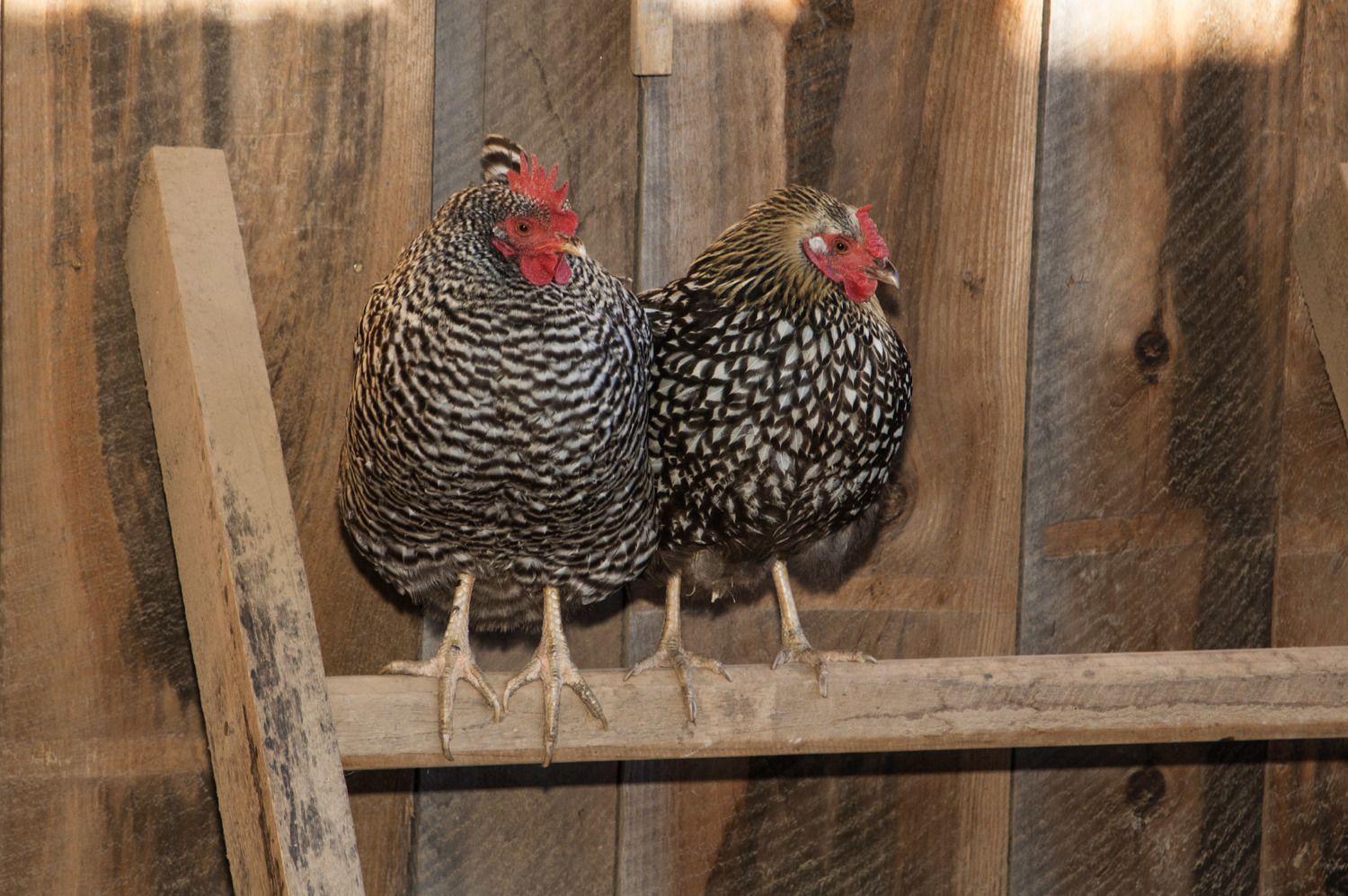 Here's Freda and Dottie sharing a perch one cold morning.