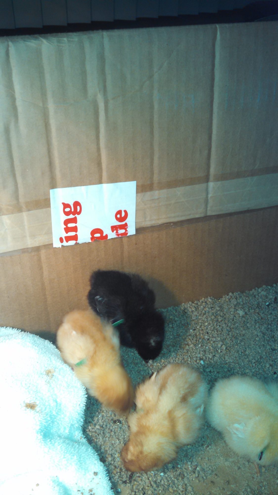All I know is that they've been sexed and are all female, are about 30 days old, and I think they were bought at Atwoods. The pictures aren't the best but these ladies are very active so it's hard to get a good shot. We have 1 black, 2 sort of caramel colored, and one light yellow.