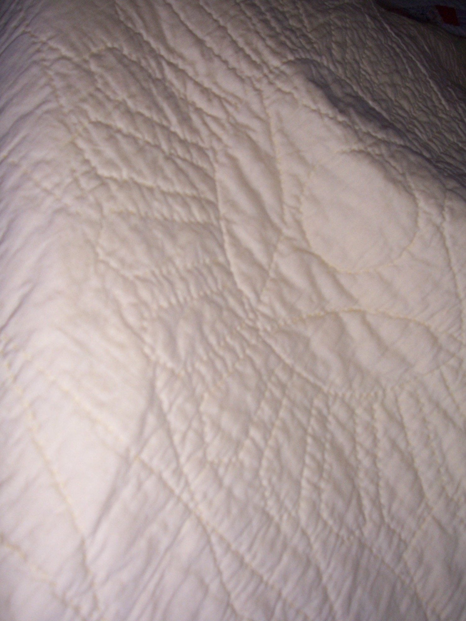 Three quilts...each are dated by the fabrics to about the 1930s to 1940s...one from an aunt and two rescued from an antique store and a flea market...The craftsman ship by the two purchased quilts is stunning. You will need to enlarge the pictures to see the details. The handsewn quilting is becoming a lost art.