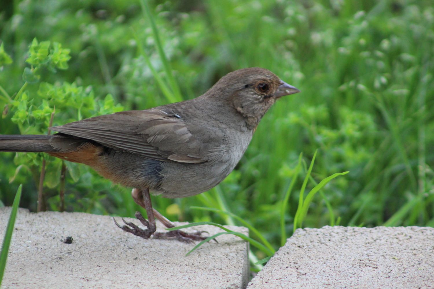 So there's a little CA towhee that likes hanging out in my backyard. Even though it isn't mine, I just wanted to find out what it's injury is. It's been like this for about almost probably 2 years now? something like that