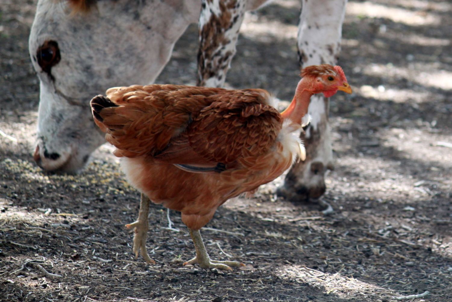 Actually, all of our chickens are pretty vocal and like to 'chat' with us when we are outside. The Partridge girls are like pets, love them! (I never would have thought I'd say that about chickens! lol) Our Buttercup is 'wild' and wants very little to do with us. Half the time we forget we have her unless we actually see her. She's crazy fast and just a little larger than our bantams but she is beautiful. Our turkens are also very pet like and I wish we would have gotten more than 2 of them! No one is laying yet but they seem to be maturing faster than our two red sex-links that are a month older (we FINALLY got an egg from one of the red girls on the 15th and 3 days later still nothing else...) I have a few pictures to share.