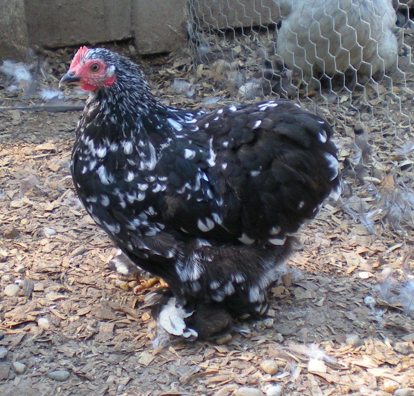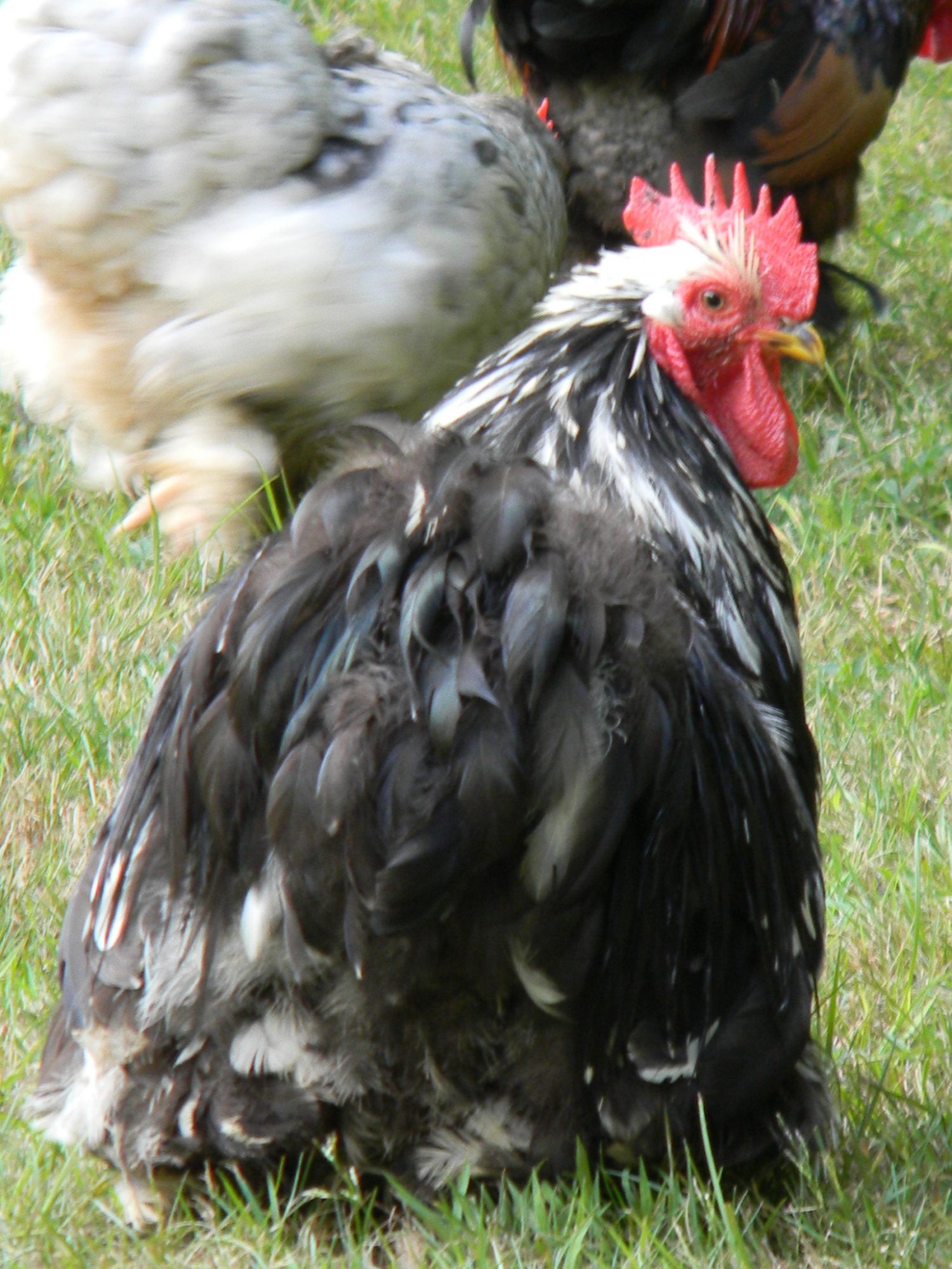 The blue mottled hen in the background is possibly a grandmother and the roo a grandfather. Too bad I sold them!