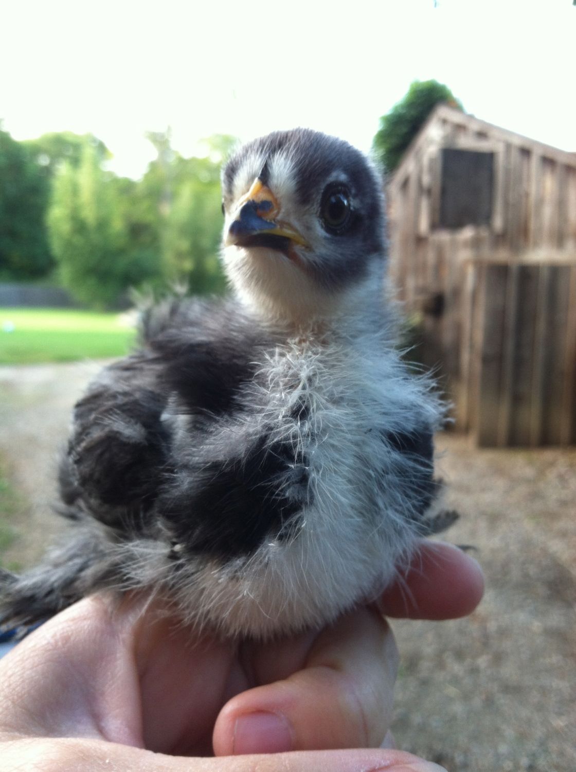 i got them from Ashley's chickens in Danvers MA. (she is only a couple miles away from me) anyways.. i'm really intrested in what they might look like as adults.. they are all from MF/calico parents the larger two are 6 weeks old and the smaller one is 4 weeks old. i was told the dark one was white as a chick..