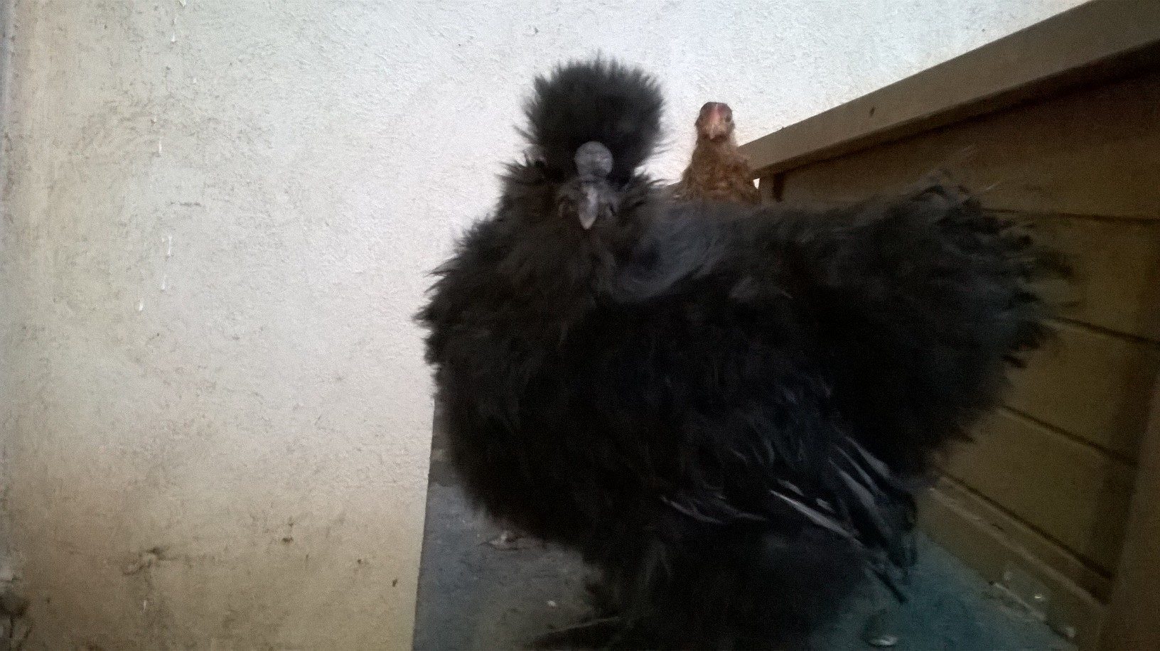 I really hate to do this, but I have a young Black Silkie Rooster that has just come of age (first crow last weekend), and he has to go. I really want to keep him, because I think he will make a great gentleman rooster, but it will be awhile. He is very protective of his girls, and he watches over while they dust bathe and eat like a good boy should, but he is very aroused right now, and my girls are not amused. They are actually quite miserable, and from what I know, it will be several months to a year for him to settle down. I will have to move again in a couple of years and do not want my girl miserable for half of that time.