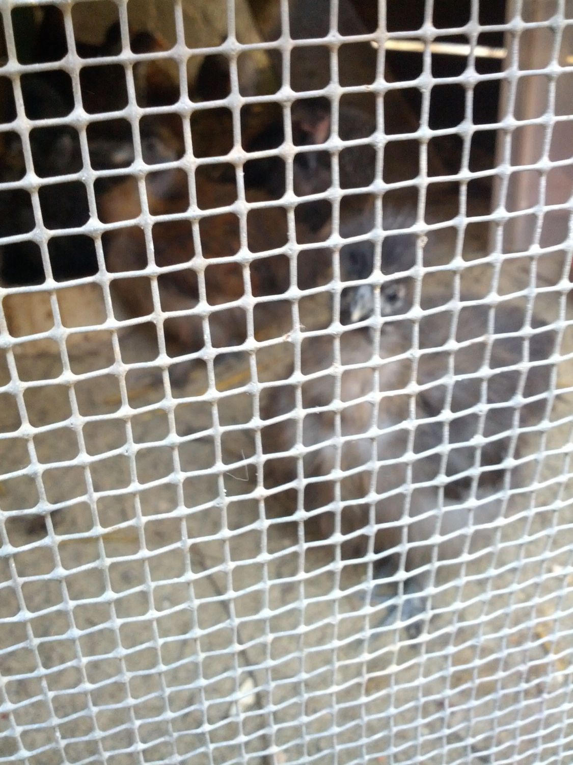 Not a great pic of the chicks, but it gives you an idea: Safe from the crazy Turkey lady and getting some sun in the bottom coop: