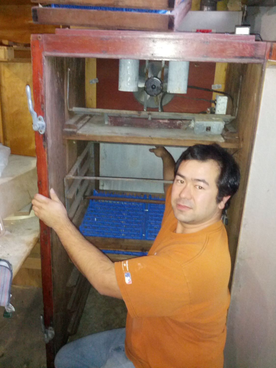 It holds just under 600 eggs. Mario refit the fuses, and is tinkering with the wiring today, it was overloading itself last night with its 2 heaters. It has a wet heater ( it heats the water pan) and a dry heater. We didn't think it would need both, but in the cool of the garage, it didn't get hot enough last night with just one. While heating up it did not use a ton of watts, I was afraid it was going to be too much of an energy hog to run, but it was not terrible. Less then the old refrigerator. We used out wattage calculator on it We got all the old lime off the water pan, it is a bit rusty but works. I'm hoping we get it up to par tonight and it holds temp until Monday so I can use it. TJ's will hold the newest eggs they get Tuesday AM for me out of the refrigerator so they are ready to go and I will be set for my one million egg test Tuesday!