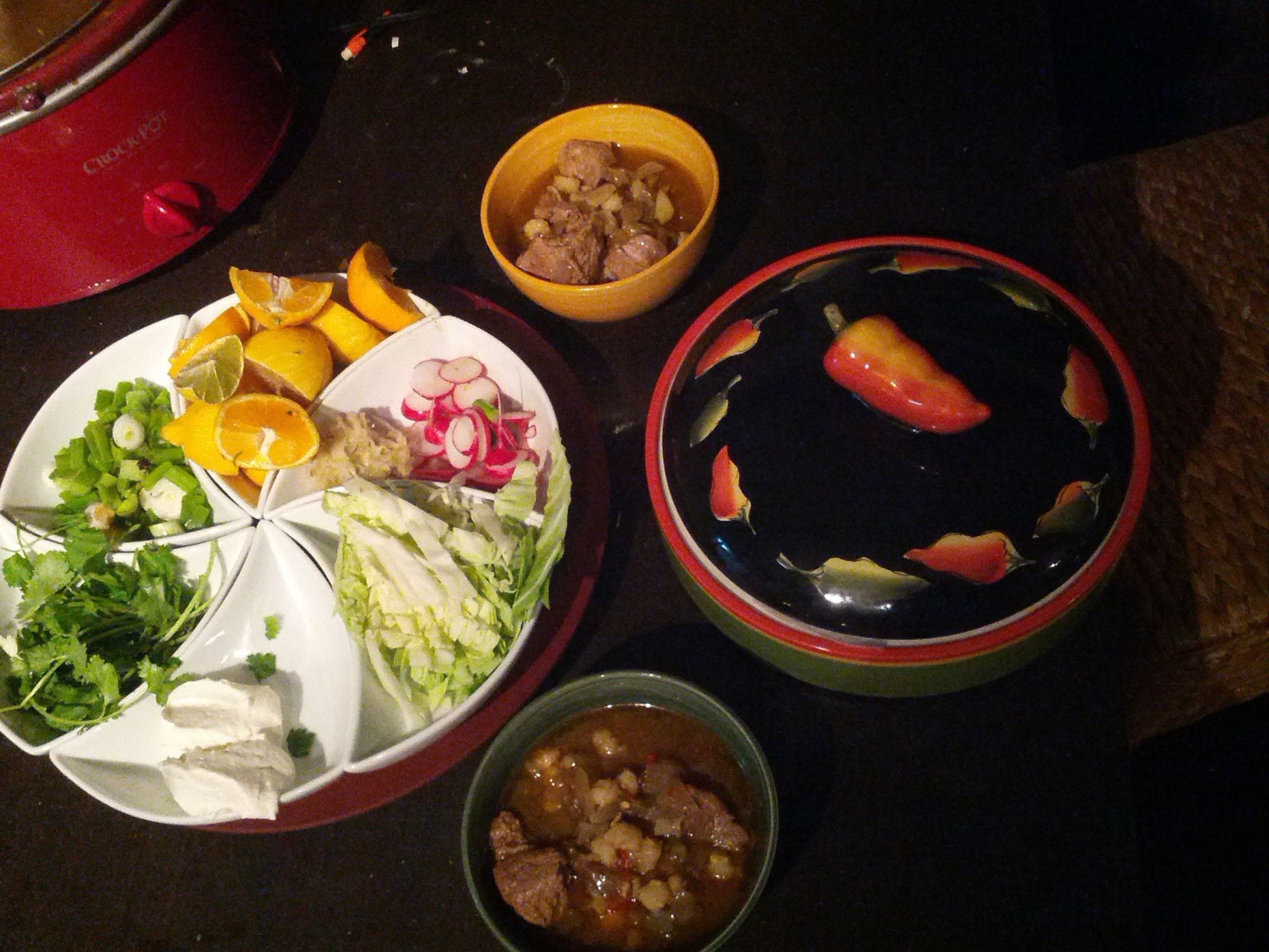 OH! I forgot to post this. Here is the pozole ready to go. half the fun is sticking stuff in it.