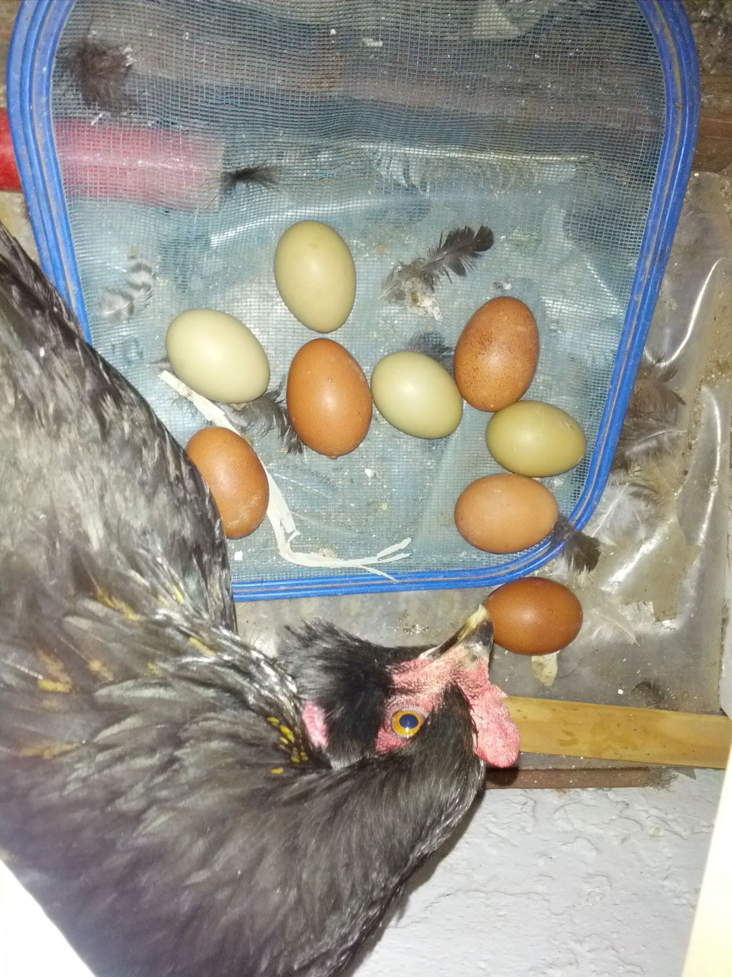 I also moved my F1 OE roo into his own pen. Tonight I will put some Marans girls in there and we will set up lights some time this week. BY the time they start laying i will have f2! My f2 girl is staying with the marans roo since she is laying. We found the egg stash yesterday, 18 FCBM's and OE's hiding behind the spa. So I will have some of my own eggs to test BMM with.