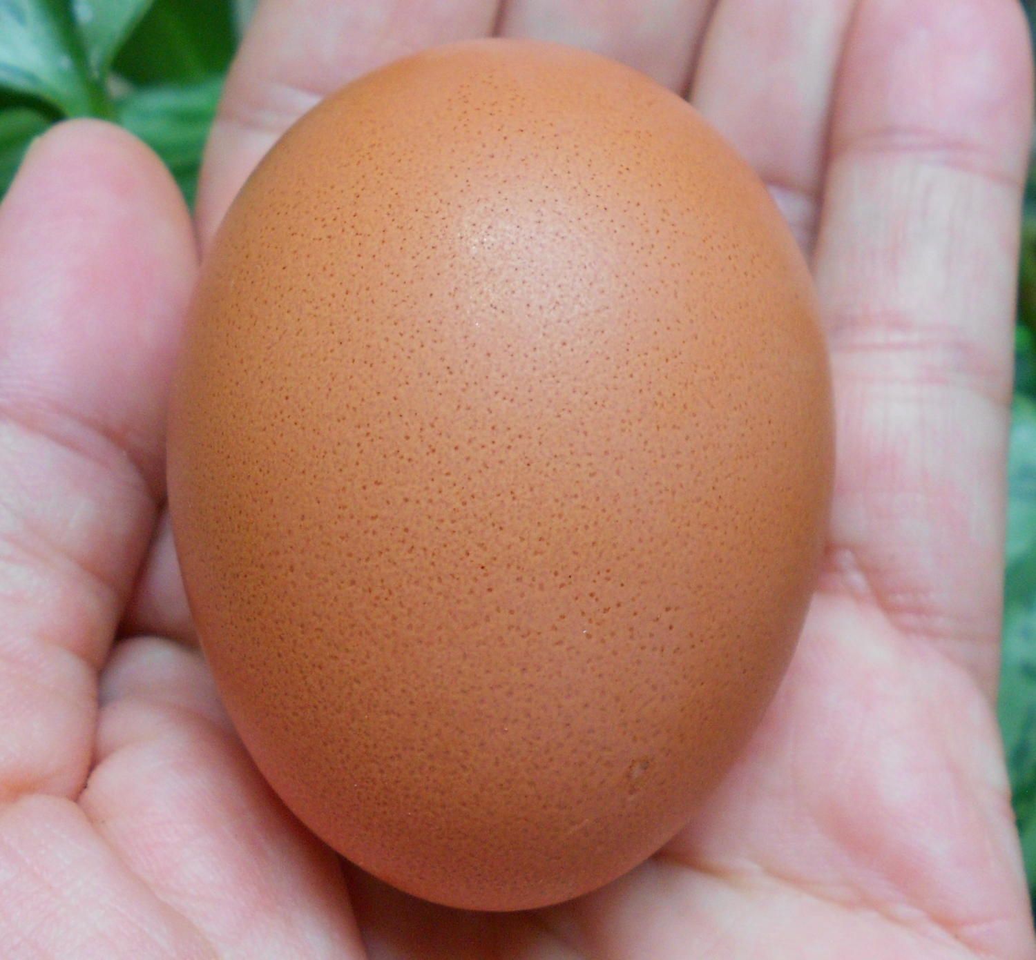 One of the pullet eggs I got today. It is a first egg....don't know who laid it. I know the other 2 pullets laid their eggs today, so this is another pullet just starting up.