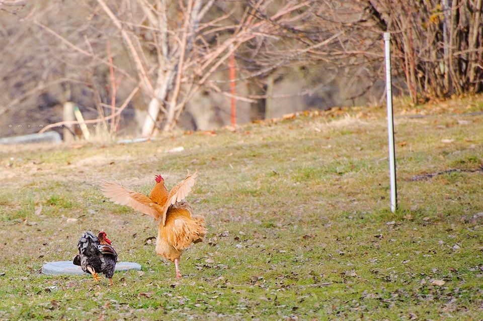 Foghorn totally chasing Chief away. Man that Orp roo has quite the appetite for the ladies. He is large and rough too. :| He keeps Foghorn busy!