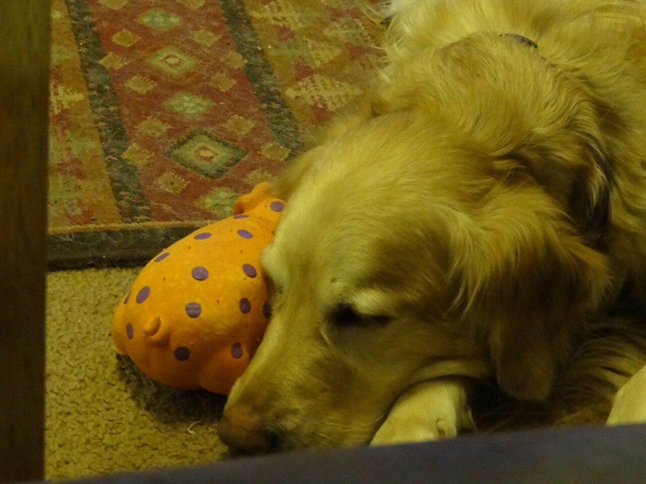 I finally found a dog toy I can stand for our Golden. While in Wal-Mart I saw some pigs and gave it a squeeze. It is more of a soft OINK rather than the squeeky squeel of most other toys. This dog also chewys out the noise makers regularly. So far she has only played with it and not destroyed it!