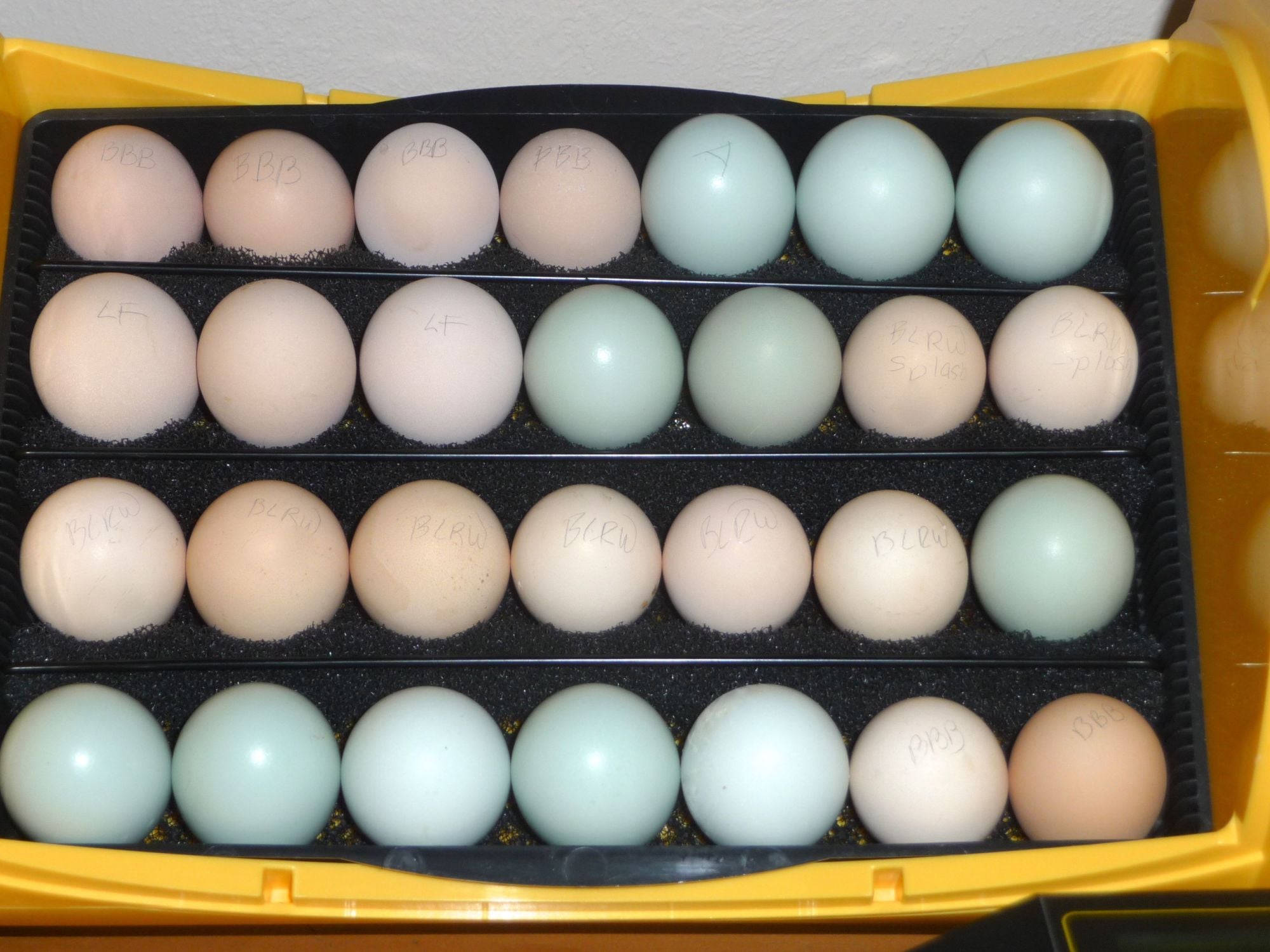 Oh thank you for the photo!!! I had it set where I could only get 19! Saw your picture, took all the eggs out and counted evenly to split them up and I got 25!!!! Thank you! Thank you! How's this look?I do not put the spongy insert in on the sides, just inside of the metal rails. I space the rails by counting the groves that hold the rails. Seems like 10 (counting each individual projection that holds the rails) then placing the rail in-between the 10-11 count slot (count them in my photo) I think that makes an almost even amount of spaces to make 4 rows. You need to put the paper in the top from the beginning if you are using the humidity pump. I get perfect hatches with the recommended 99.6 temp and humidity at 40%. Hope this all makes sense and good luck with your hatchI everyone, I'm getting ready to set my eggs. We just got back from an overnight trip with my daughter and her family to Butte Meadows for a quick get-a-way....we rented a cabin up there for the night and did some four wheeling and sledding with the kids, very relaxing and fun. Little sad when we went by to see the last log home my brother built before he died. Was kind of hard thinking of him trying to finish that house while undergoing kemo and radiation....wheww.....OK, back to my questions... In the Brinsea 20, do I put the foam thingys with the bars around them on the sides too? And how far apart do I put them or does that depend on the size of the eggs? Pointy side down or up? Why can't I remember this? The incubator has been on and holding temp and humidity since Wed. Also, what's everyone's opinion on humidity and temp. The Brinsea paperwork says 99.6F and 40% humidity the first 18 days. Also, does that paper thing go in right away? It's in there but I thought I read where someone didn't add that until lockdown? Thanks!Here is the picture I recently posted of my eggs in my Octagon 20 already incubating for reference~