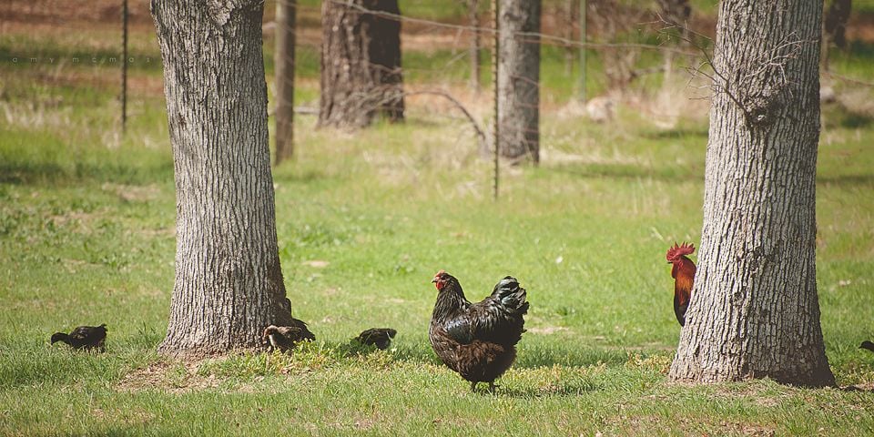 LOL, it looks like that roo is stalking the hen. Always nice to see a mama out with her babies.