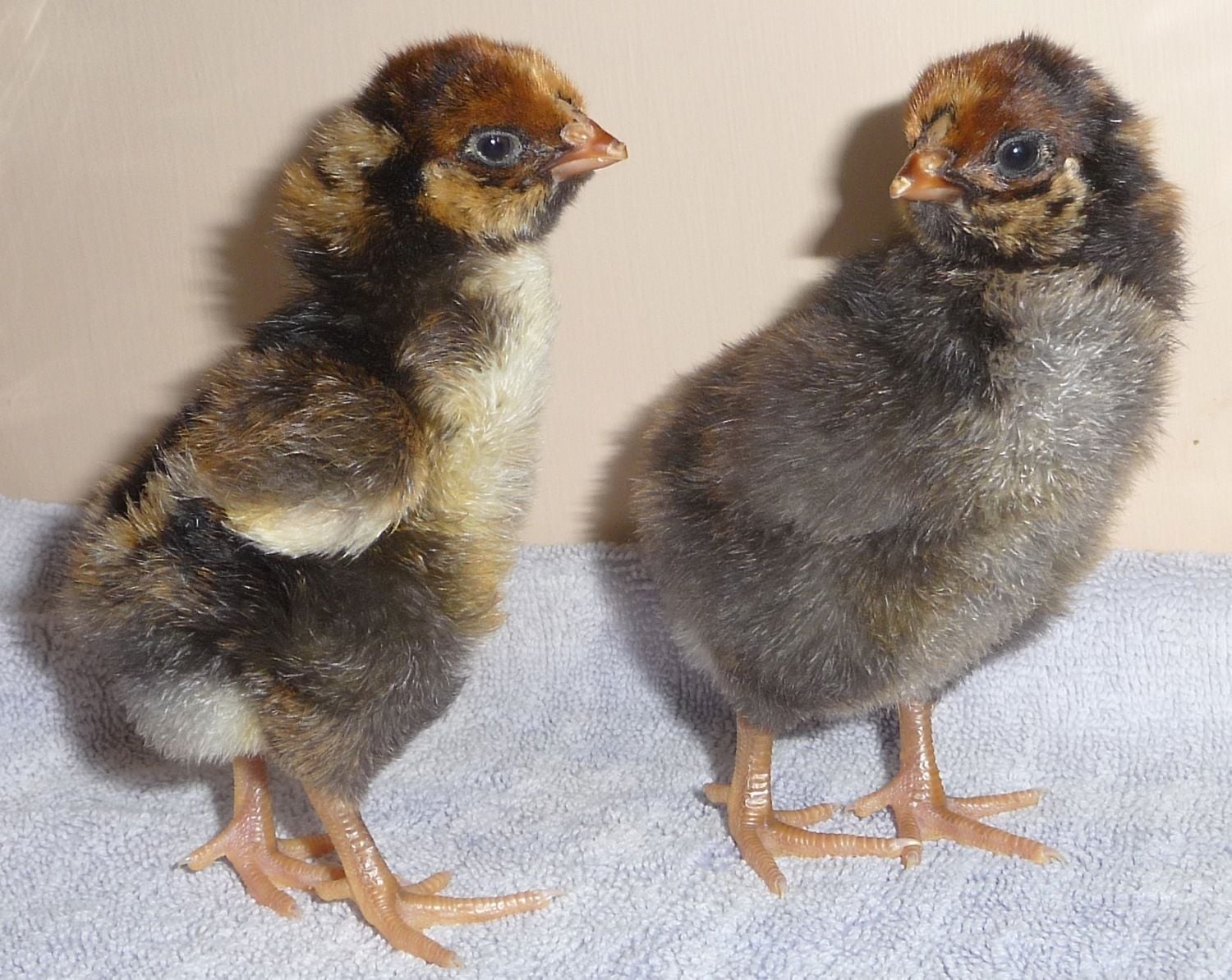 All but one of the 17 eggs hatched. I have extra chicks if anyone is interested. 4 bantam buff Brahma (show potential) 2 bantam blue laced red Wyandottes (one blue/one splash~ show potential) 2 LF black laced red Wyandottes (Foley x Catt lines) and 2 EEs (turquoise/blue egg layers) available. CLICK ON PHOTO's FOR A CLOSEUP VIEW ~ These are some of the EE chicks that are going to Jason