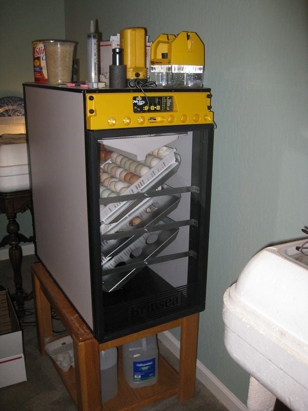 Okay, here's the new toy.......... Got it set up! I've already got all three shelves filled, with a half tray of overflow in the bottom that need hand turning.................(but one whole shelf locks down this next week).