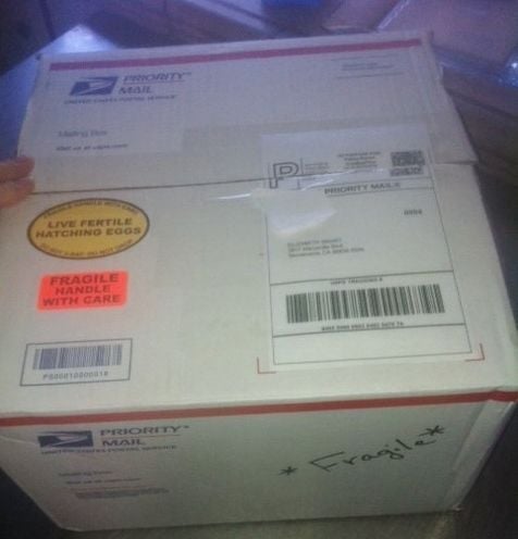 I got my shipped eggs today!! They all came in one piece too. I tried to find and mark the air cells, but I couldn't find them. I had the same problem last time with local eggs. I couldn't see the air cell until I candled at 7 days.