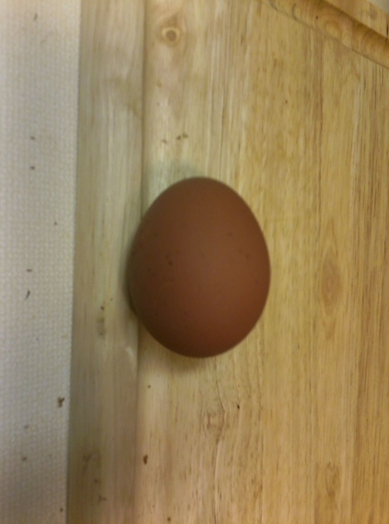 I am in great one way mental debat ! I am not going to mix my brown and blue eggs in this current incubator I have. not worth it. the penedesenca take longer to hatch and the blue eggs are hatching quick. It is messing with my incubating mojo. so should I set just dark eggs this week ? white empordanesa and crele penedesenca or should I get my silver ameraucana's from Jerry and set them for my Olive egger project? I really need to bump my numbers of the crele penedesenca as there is much demand plus my emp's need help too. I would like to have a few pens of each by the end of summer.. oh the mental pain :idunno Here is a Emp egg I gott yesterday [/quoWhat a perfect egg! I say set more of these guys!