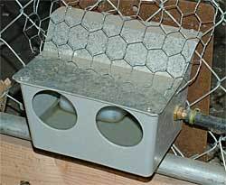 I use a similar waterer, but mine is round and has a cone shaped top to prevent roosting or perching on it.