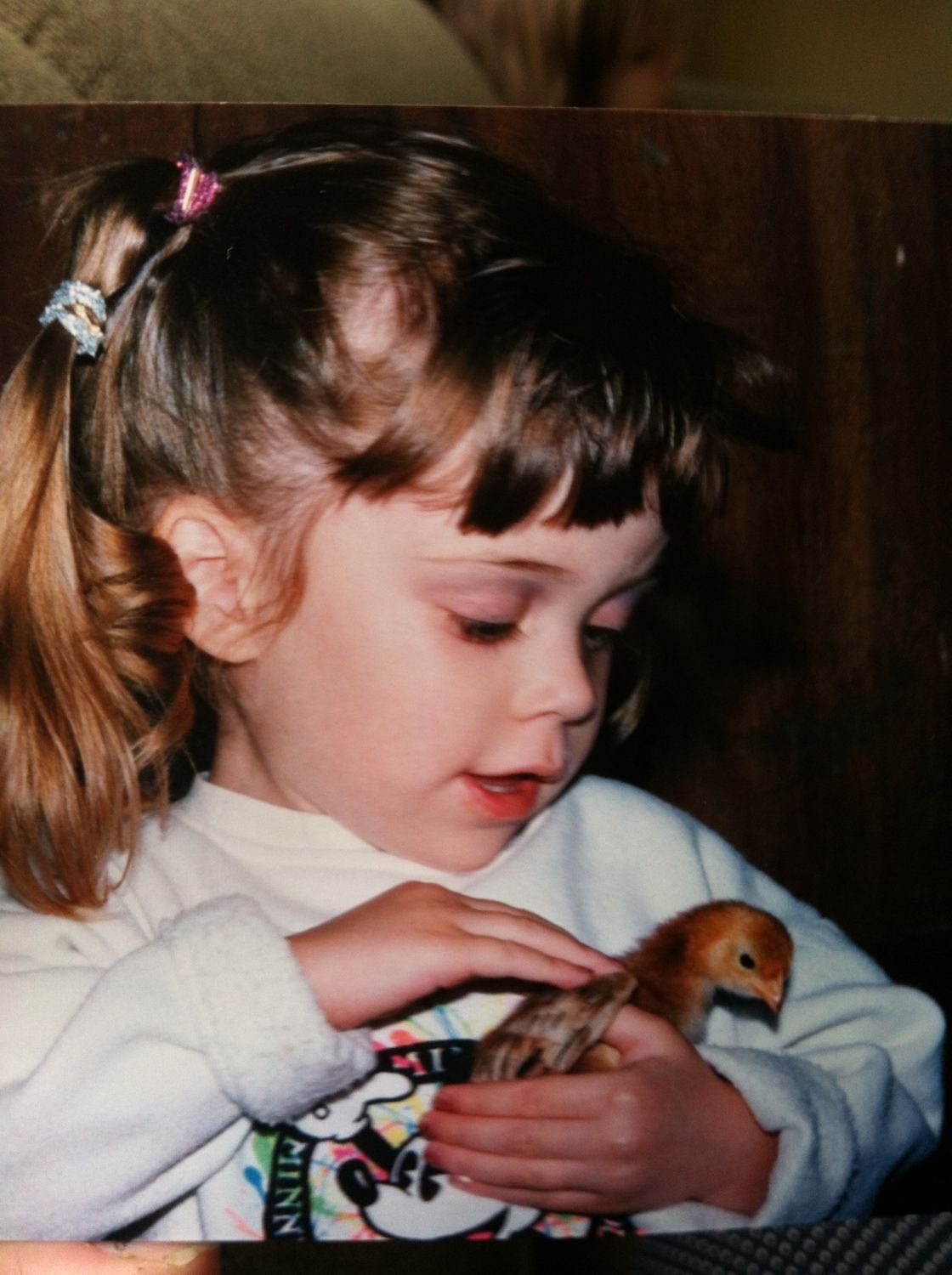 This picture is adorable!! I had a couple of chicks when I was young but I didn't know how to take care of them and they died.