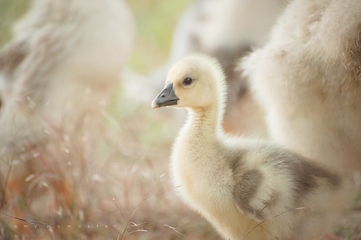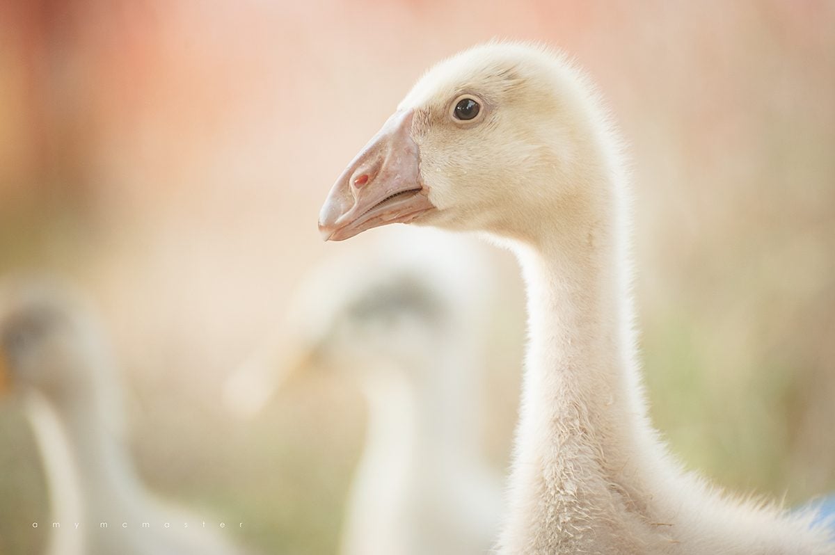 We also have a stray Canadian gosling that has adopted our flock. We discovered her chasing our gander around. Absolutely had him freaked out. He was running away from her all over. We heard him honking half the day, not really thinking much of it as we didn't see her (she was so small) until much later that evening. We could hardly toss her out so she runs around with our birds, eats our food, swims in our pond, goes to bed with our birds...but free to leave at anytime. We have as little contact with her as possible (only last night did I need to touch her because she scraped her beak and it was bleeding) - I neosporin'd her beak and sent her on her way. I keep hoping her mama and daddy come back for her.