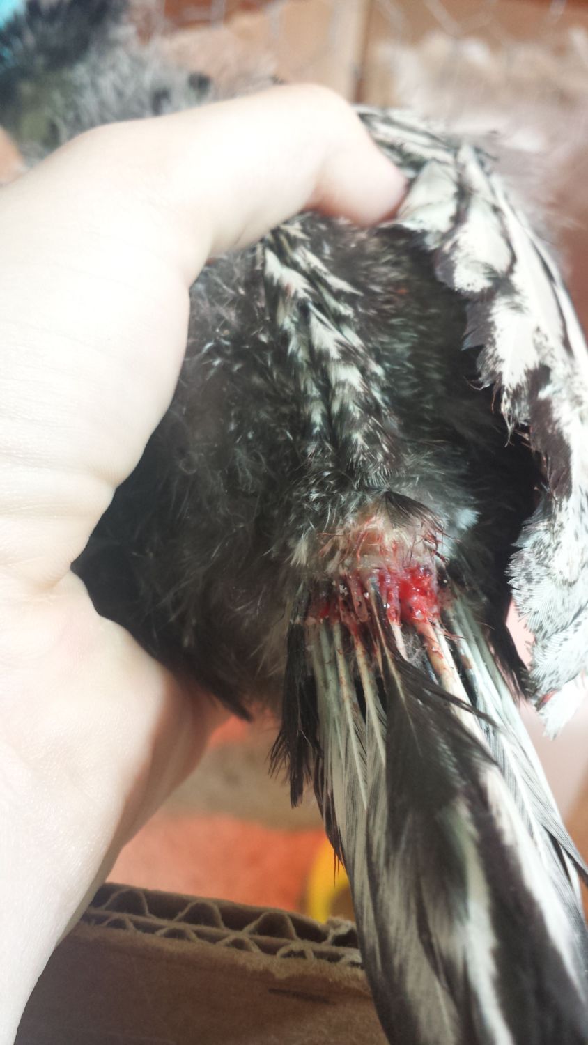 so I just cut out a small circle of chicken wire to separate him but I know this won't work for long. I only have one brooder and one heat lamp, so I don't know what else to do!And what should I do about his bloody tail??