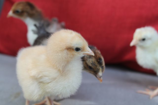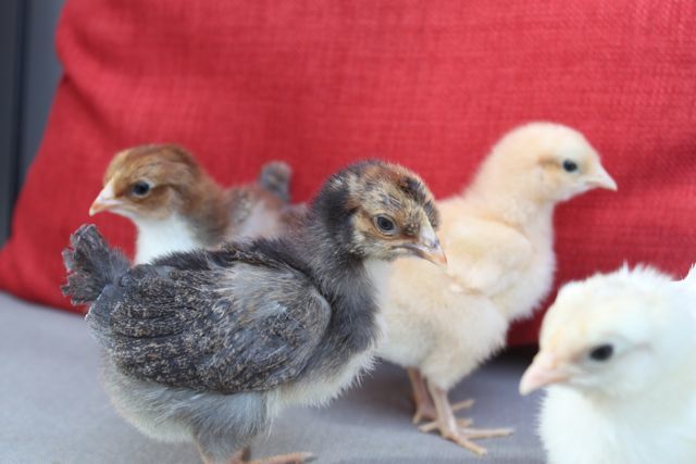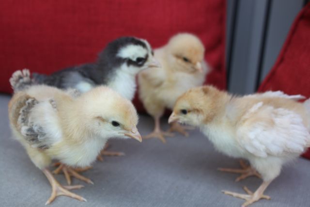 I have 1 RIR 2 Barred rocks, 2 Buff chicks (thinking they might be orps) and two seemingly leghorn looking chicks. I've been having to work the most with them because they seem to be very flighty and when we got them they were maybe 4 or 5 days old so I was already behind on socializing them! But, they are getting better everyday!