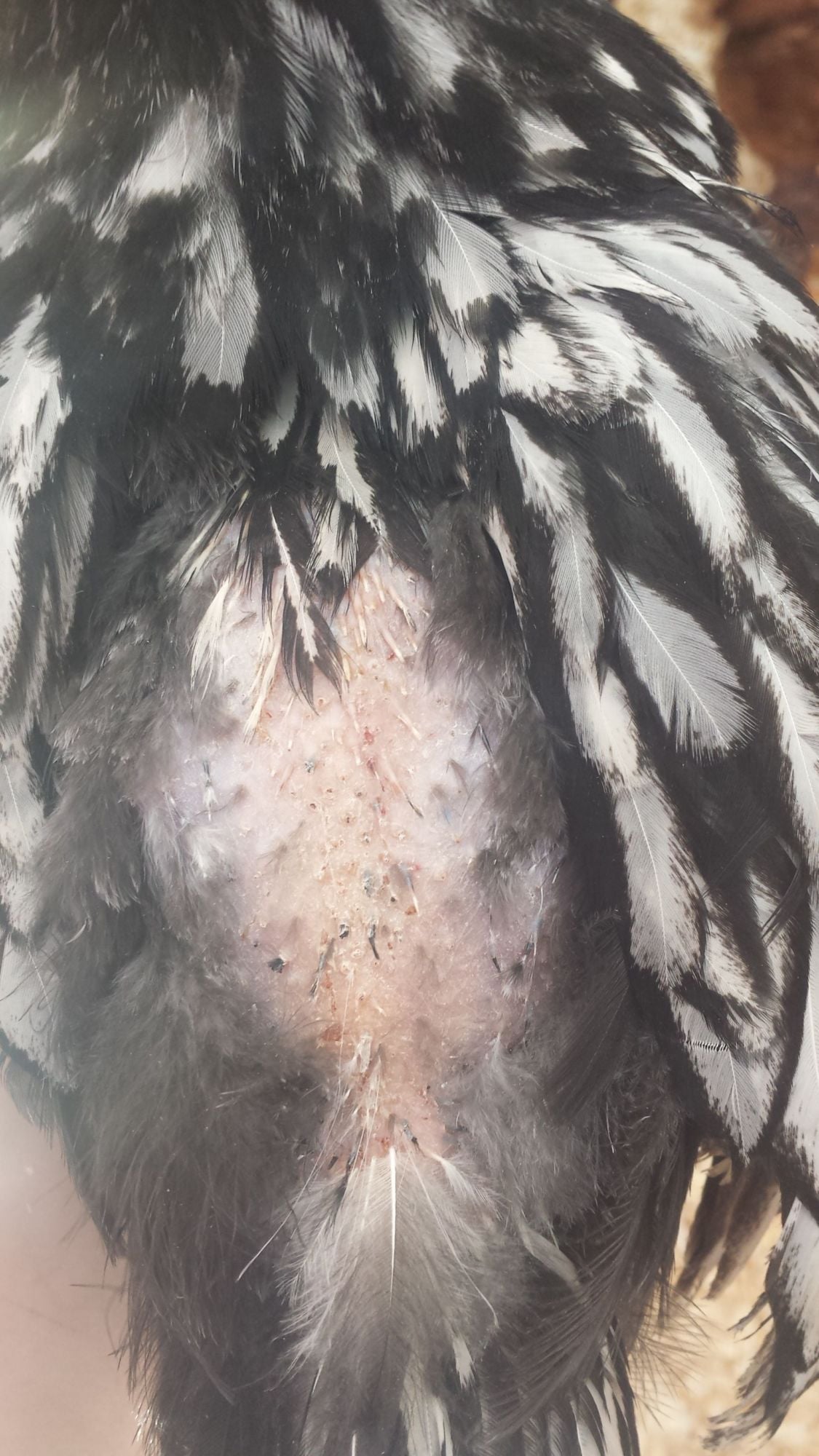I just went to check on them this morning and saw some of the girls pecking at his(now slightly bloody) tail. I put them out to free range so they'll leave him alone until I can go get some Blue Kote later today.