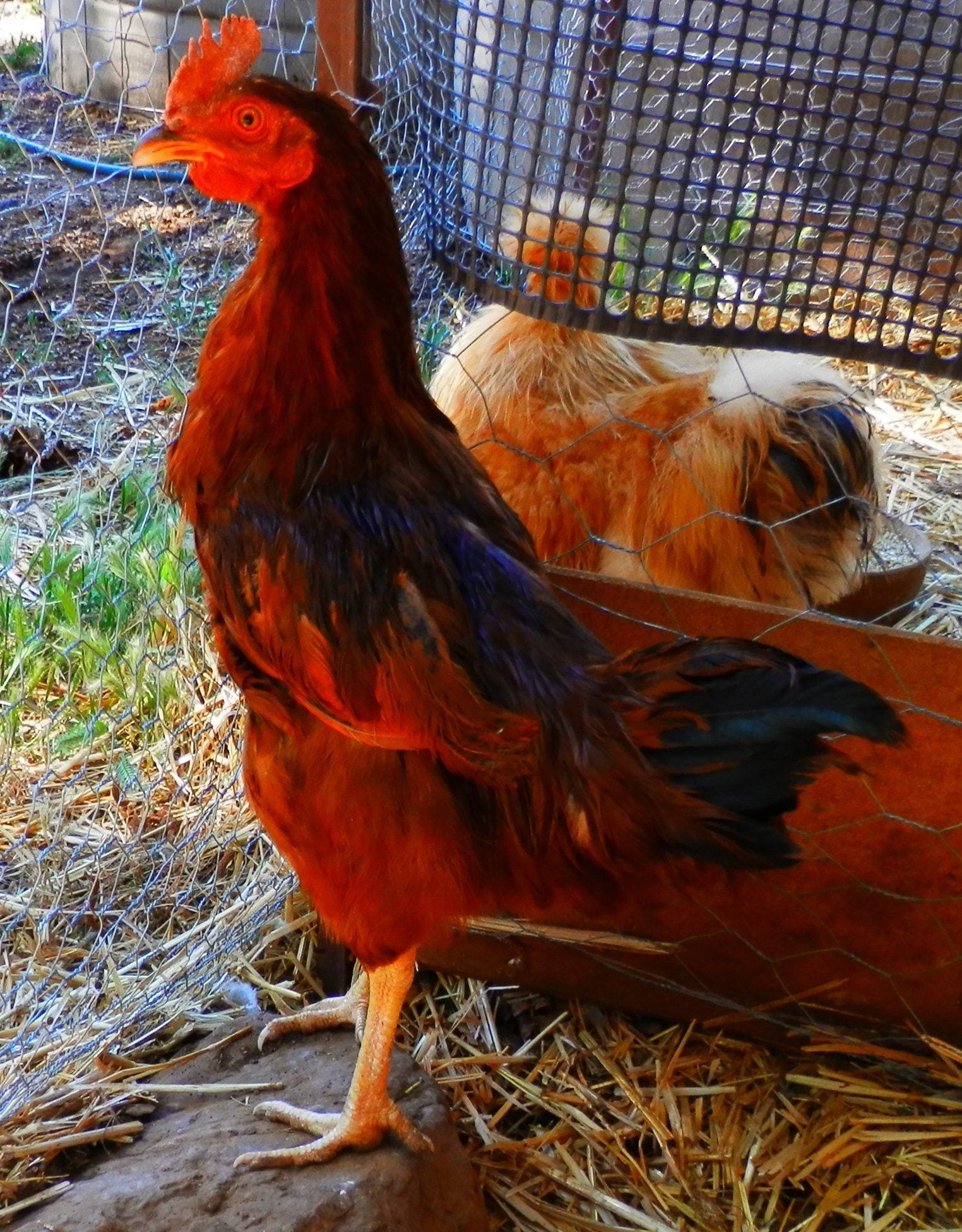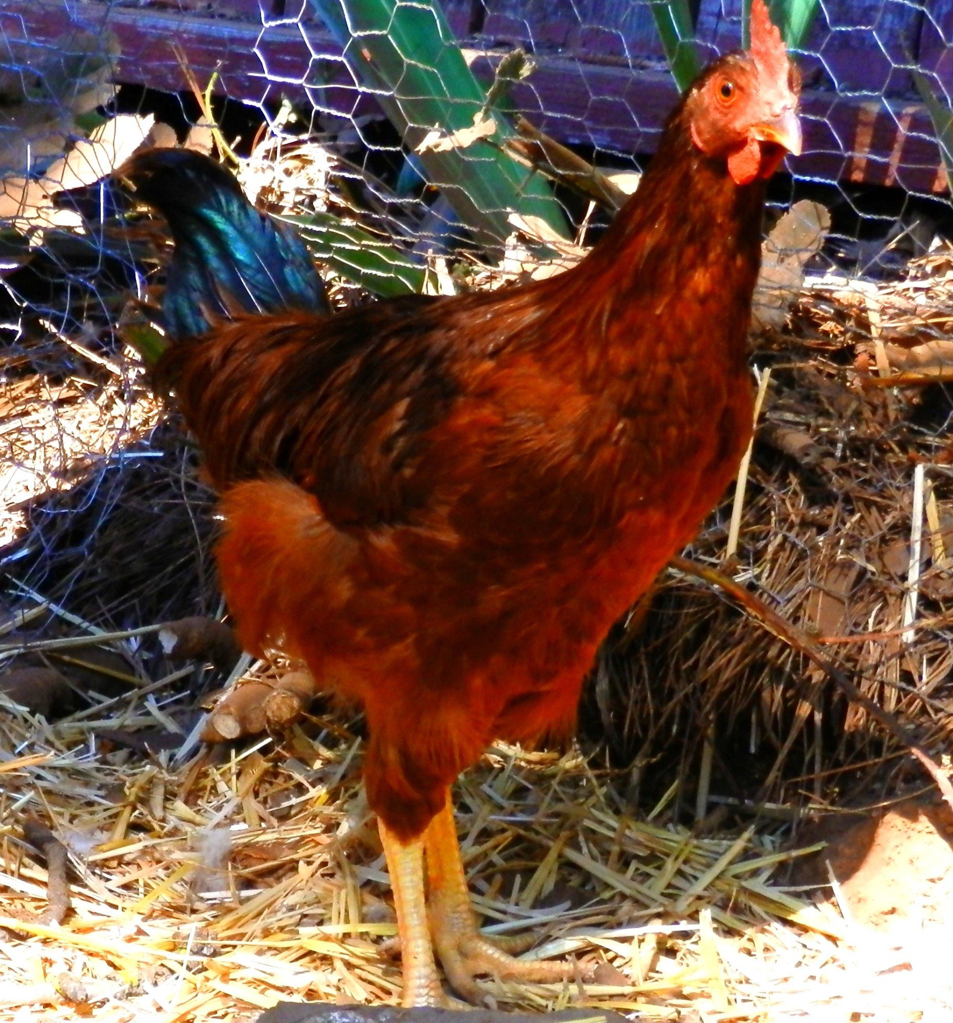 Here is Dusty... I have one RIR hen & Dusty was looking a lot like her so I thought it was a hen, but today it was making some weird crowish sounds... Dusty is quite a bit taller than his/her sister that hatched at the same time.