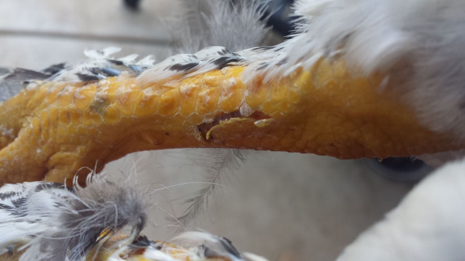 I don't have Vetricyn...should I just use the blue kote? She's been laying down a lot. Should I separate her from all the others for the rest of the day? They put themselves to bed in about 30 mins. Where would I put her?The best bet is to first spray with Vetricyn if you have it. Then I'd coat it with BluKote and keep a close eye on her. Make sure she doesn't get shocky. I'd keep her quiet for the rest of the day and then return her to the flock.