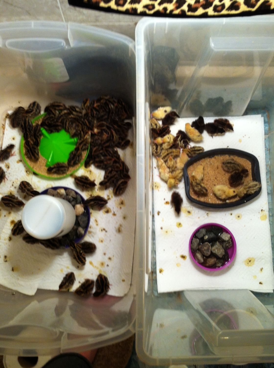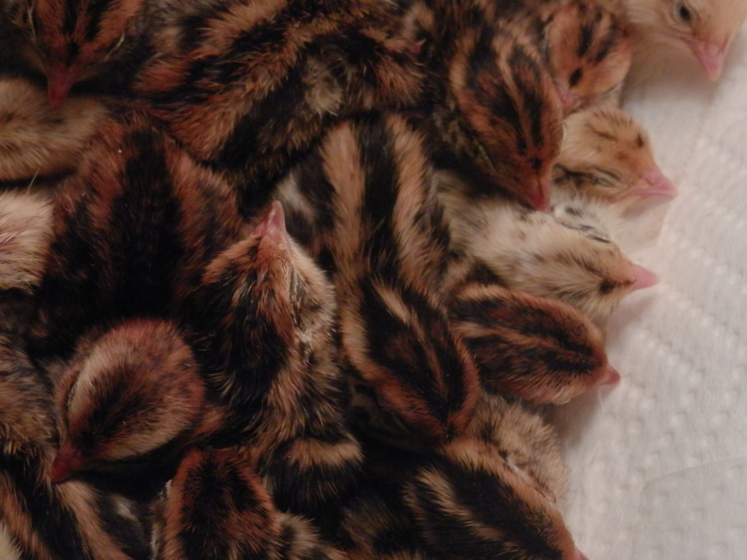 Awww, oodles of love!Holy buckets of quail babies!!!! You want videos? Pics? I got it!!! Out of 109 to start 87 hatched & are super strong little ants running around!!! LOL!!! They took forever! They started at 8:30 am on Saturday & didn't stop until around 5pm last night. 87!!!! I cannot believe it!!! Only one has an issue with her legs. She can get up on her feet by herself. Cute little TuxedoI think I may need to cull her. 1/87 ain't bad!!!