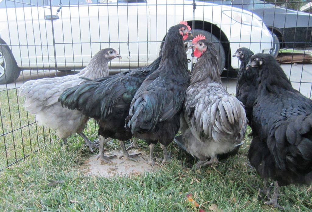 The Blue and Black Australorps from Hupp Farms are coming along nicely! I like their fluff and puck look...