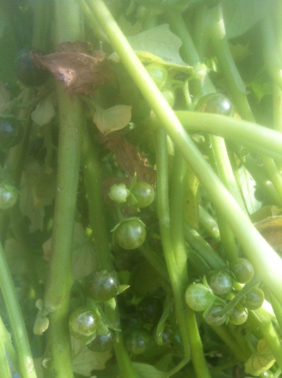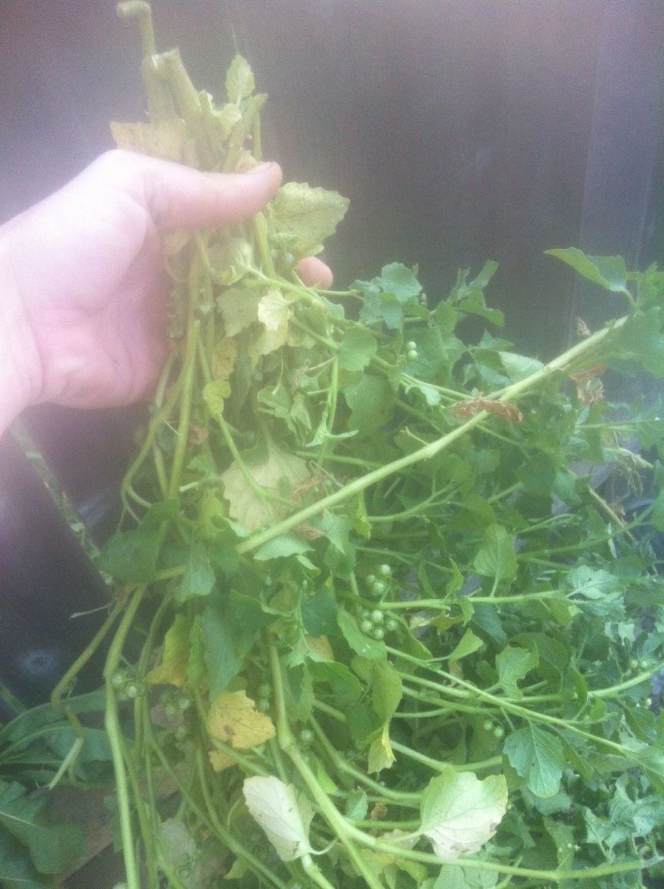 It is beautiful outside this morning. I spent a while playing in the garden. The view from the chicken yard Does any one know what this is? It randomly showed up in the garden, so I don't know if it's a plant, or a weed. This one too. I have a bunch of these and they grow white flowers at the top. Don't know what they are. Picked these this morning. Looks like i'll have to start canning tomatoes soon.