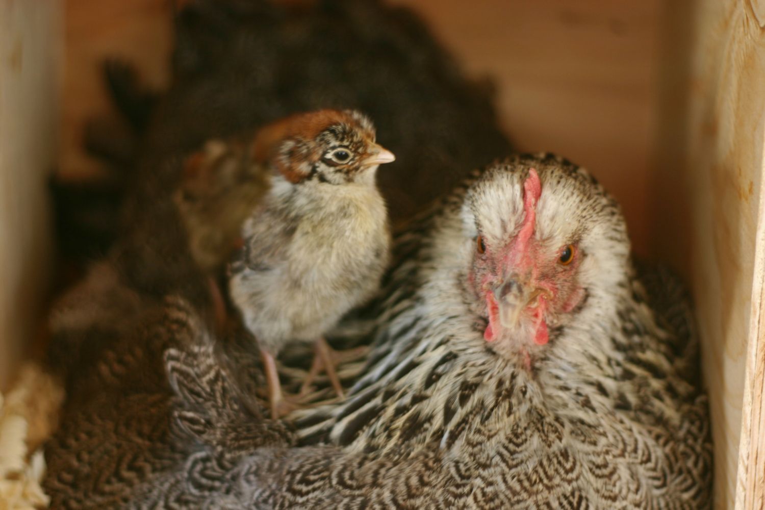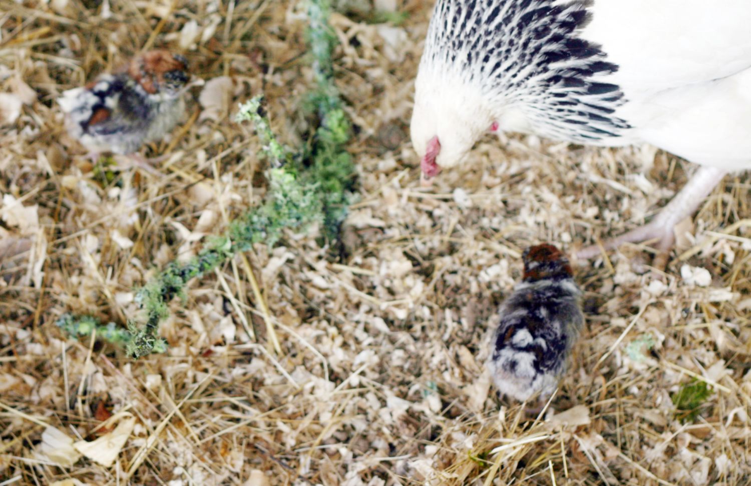 ok, so this apparently is what happens when you keep two chicks inside the henhouse for two days with not only their own broody mom (a light sussex), but also a broody sitting on eggs (an SPPR):