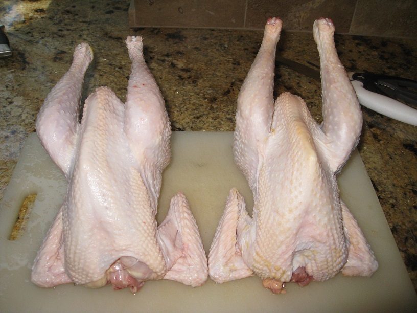 And waste not, want not.............................makes the BEST broth. (and no, they weren't both one legged birds, those are just from the PR)