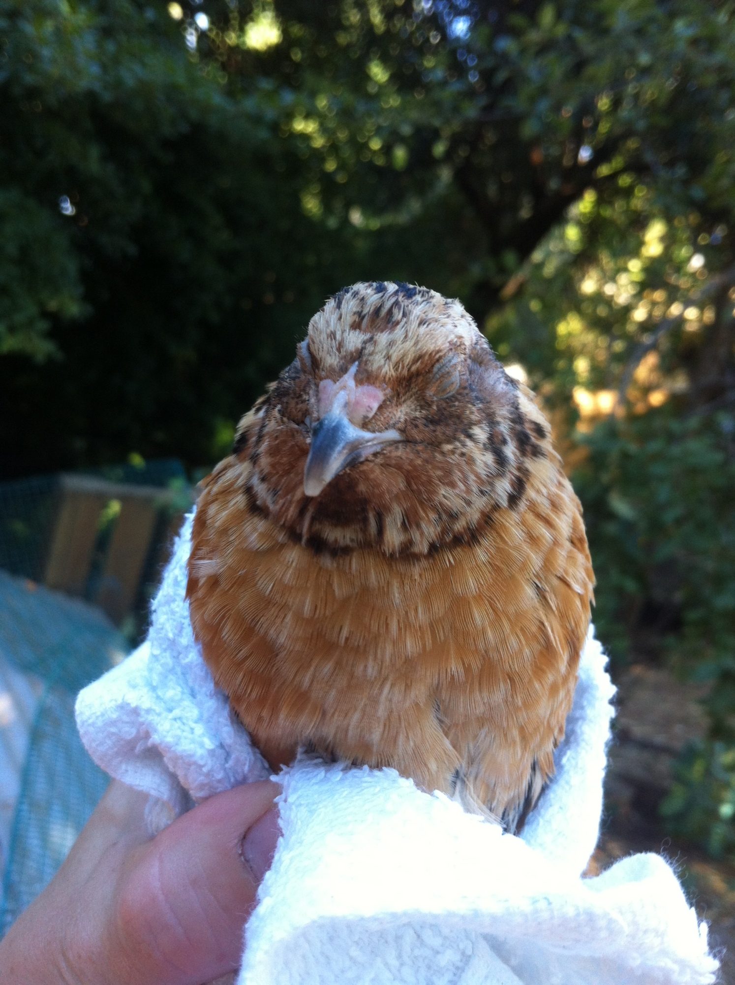 The hand feeding, I mostly mean you don't want this girl to feel like she ranks high in the flock. A submissive hen is less likely to be aggressive towards you. A rooster is going to feed hens that he favors. Even roosters will ignore some low ranking females. You want her to think she is the lowest of the low. It's like dealing with a dog that is too pushy in your household. You make them eat after you eat, you pretend to eat from their food bowl before you give it to them, you only pet them on your terms, you never let them get on the furniture, all things to make them rank lower in the pack...............same for chickens in your flock. A low ranking hen would never dream of challenging a high ranking hen.