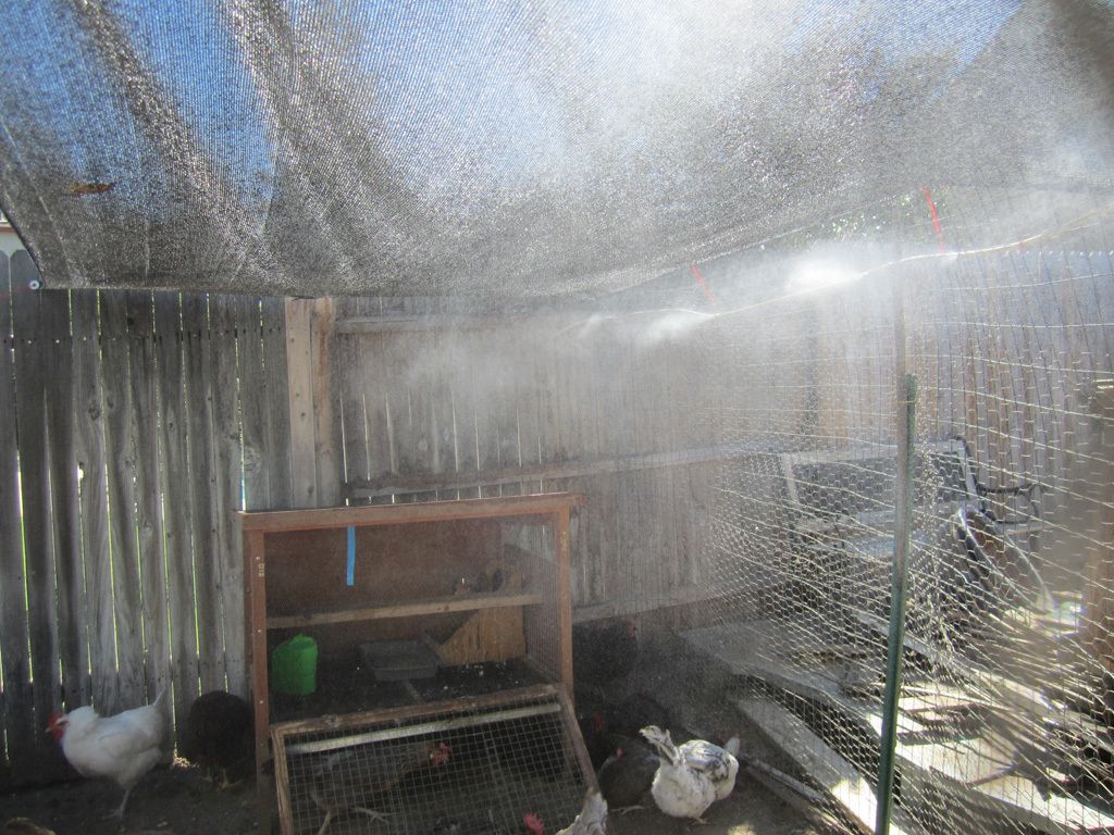 I am going to have the misters come on tomorrow just to be sure. I installed a second string and tightened up the sun screen for the layer yard. I am getting great mist coverage now!