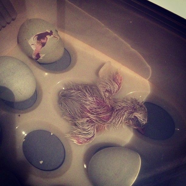 love the position it took as soon as it was out.hey all -- i made some video clips of the egg hatching today, and managed to get them all strung together -- guest-starring Daisy Jr. (the chick that hatched late last night) AND my cat Pearly -- i don't know how to embed it here, but here's the link:
