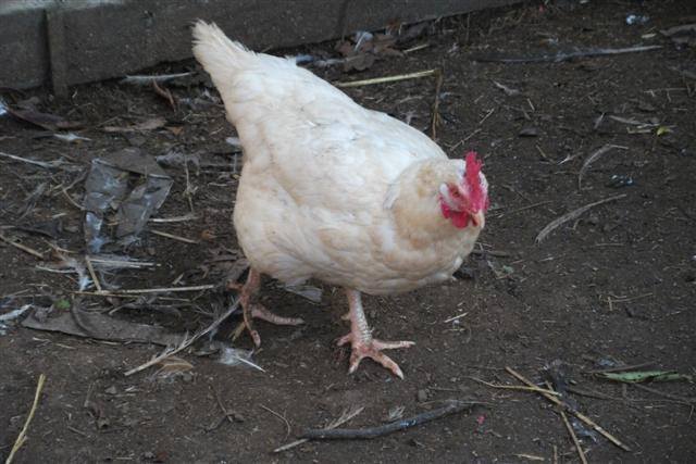 Talked to the lady with the chickens today (someone we know, at least to recognize and know where we know her from) and she's got older birds, too (of course, I didn't think to ask how old "older" is...) and some younger. One of the hens is a mystery bird--anyone know what she is? Or is it not a good pic for ID purposes? I hadn't been wanting any plain white birds, but she's pretty.