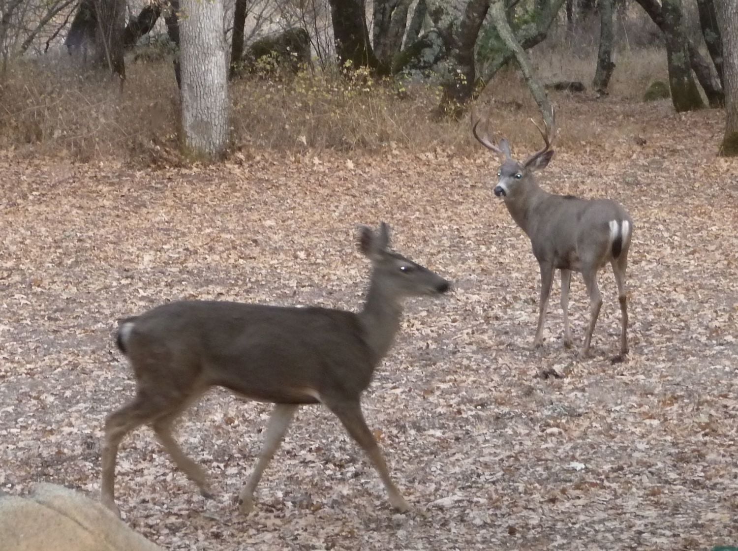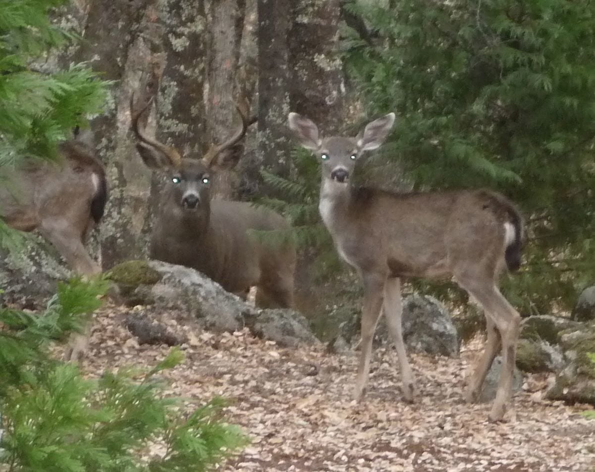 funny, i have four in my meadow this evening, one young one (of uncertain gender) pronking wildly, at top speed, up and down the meadow, to the point of panting -- all just showing off, i think!