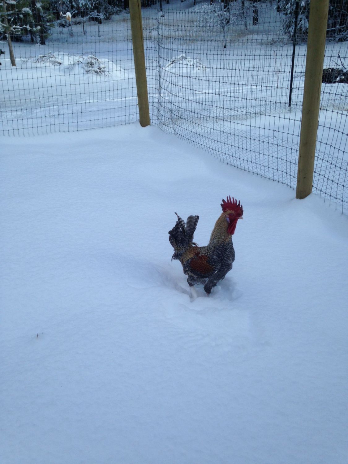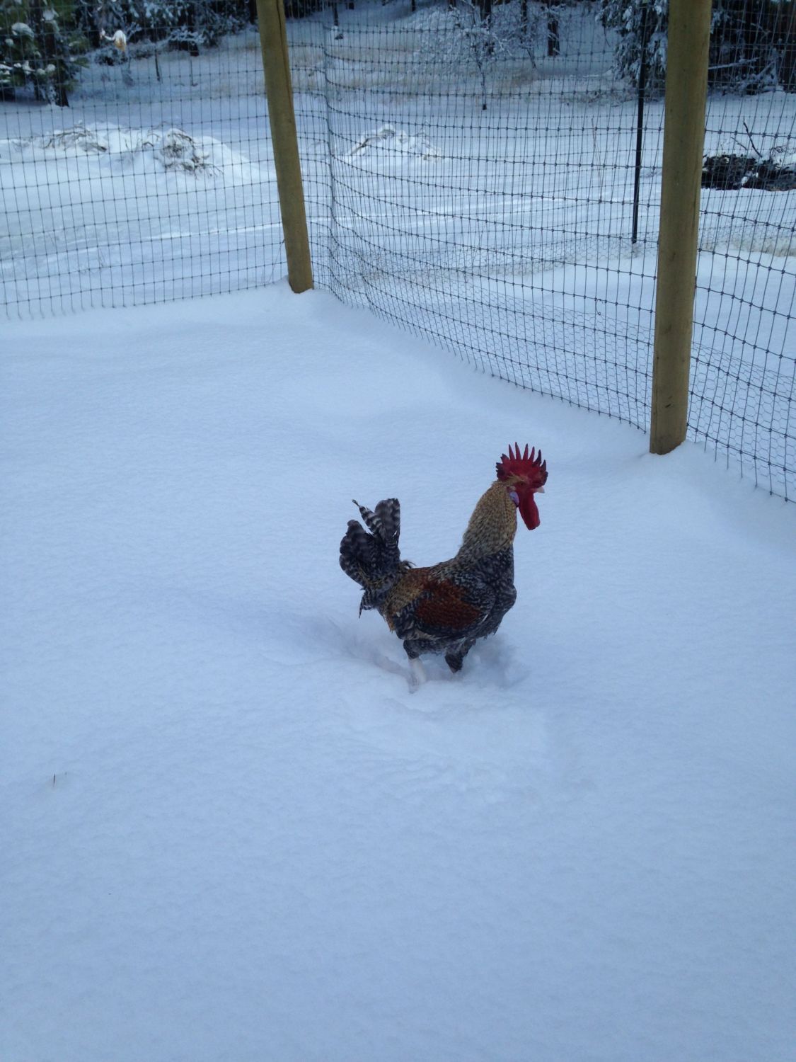 That's great! My flock went in it only for a bit, but then when it started melting would fly from dry spot to dry spot over the snow, silly chickens.